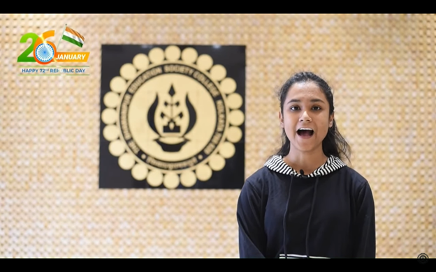At 9:00 am on the 26th of January 2021, the countdown started on Facebook and YouTube. The glimpses of yesteryears were flashed on thousands of screens on our dear be-ites. Live celebration started as Anjali Dubey, a B.com student welcomed all the dignitaries to the celebration. This was followed by a clarion call given by the NCC team leader.