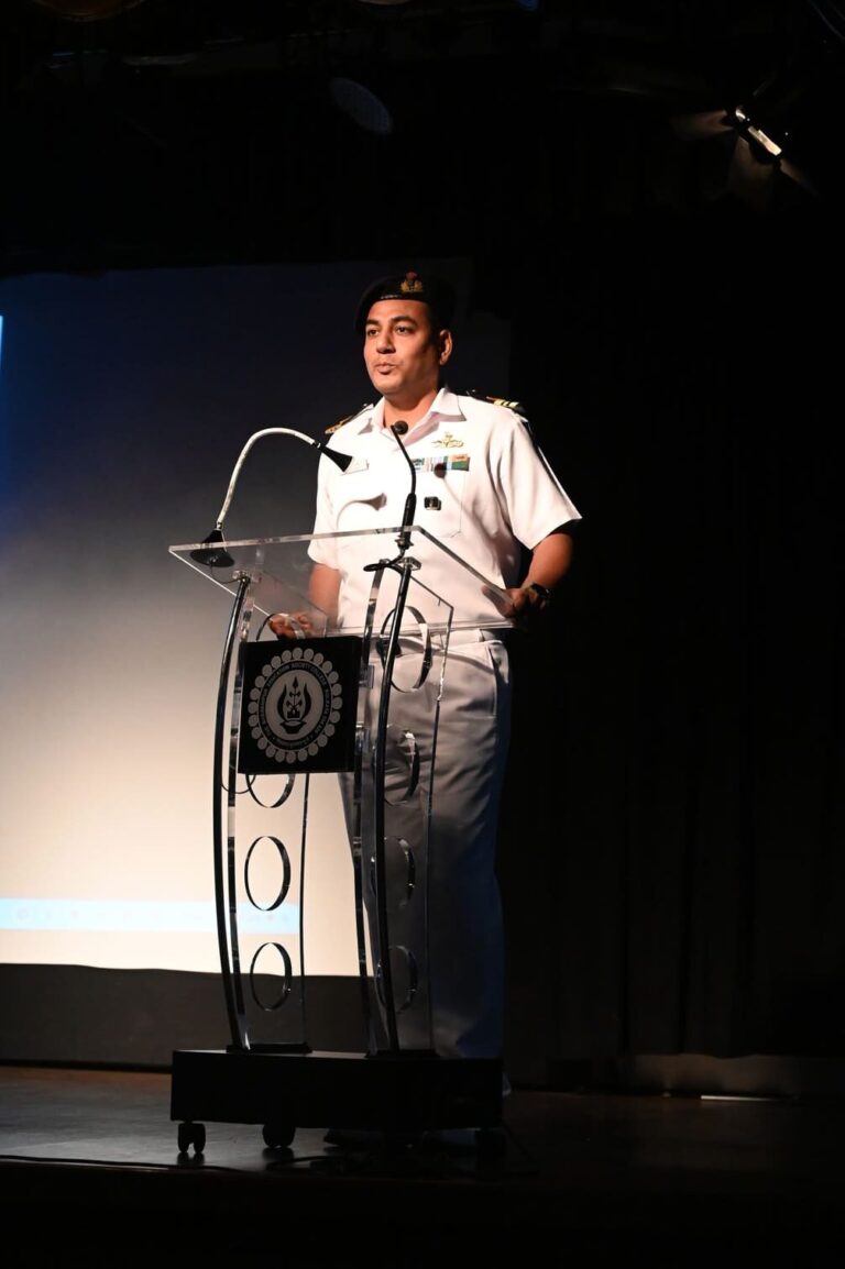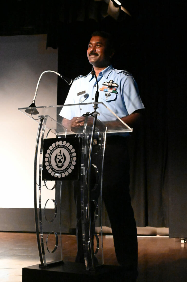 To encourage the cadets with his kind words, we called upon the stage, Wing Cdr S. Selva Kumar (VM). His speech included a critical lesson and motivation for all of us: ‘There are four pillars governing an individual’s life: self-discipline, merit, hard work, and hope. If life is a car, then these are the four wheels of the car, and the lack of any one of these qualities makes the car unbalanced’. Just like Col Rohit Sharma, Selva sir was a NCC cadet and he also talked about the NCC Special entry schemes in which one having completed the 03 years NCC course and holding a C certificate with Alpha or Bravo grading is allowed to appear for the SSB interview directly, he also mentioned that he had joined the Indian Air Force – flying branch through the NCC special entry scheme. His words were truly motivational, and our cadets extended their interest in knowing more about the different entries of the Armed forces and how NCC certificates could come in handy for the same.