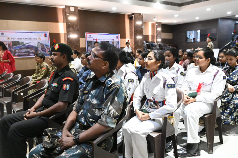 The National Cadet Corps is the youth wing of the Indian armed forces, with its headquarters in New Delhi, India. This organisation is regulated under the Ministry of Defence and was established on July 16, 1948, to provide basic military training that inculcates a feeling of comradeship, courage, discipline, honesty, and above all, patriotism. BESC is affiliated with all three wings of NCC – Army, Navy, and Air force. On December 5th, 2023, the NCC Collective organised the 75th NCC day, the event was graced by Commanding Officer 31 Bengal Bn NCC, Colonel Rohit Sharma, Commanding Officer No 1 Bengal Air Sqn NCC, Wing Commander S. Selva Kumar VM, Commanding Officer No 2 Bengal Naval Unit NCC, Lieutenant Commander Nazir A. Aziz with their 1st ladies, our NCC Officers Lieutenant Aditya Raj, Aritrica Dubey, Abhishek Kumar Singh along with defence staff from all three units associated with BESC were our special guests for the event.