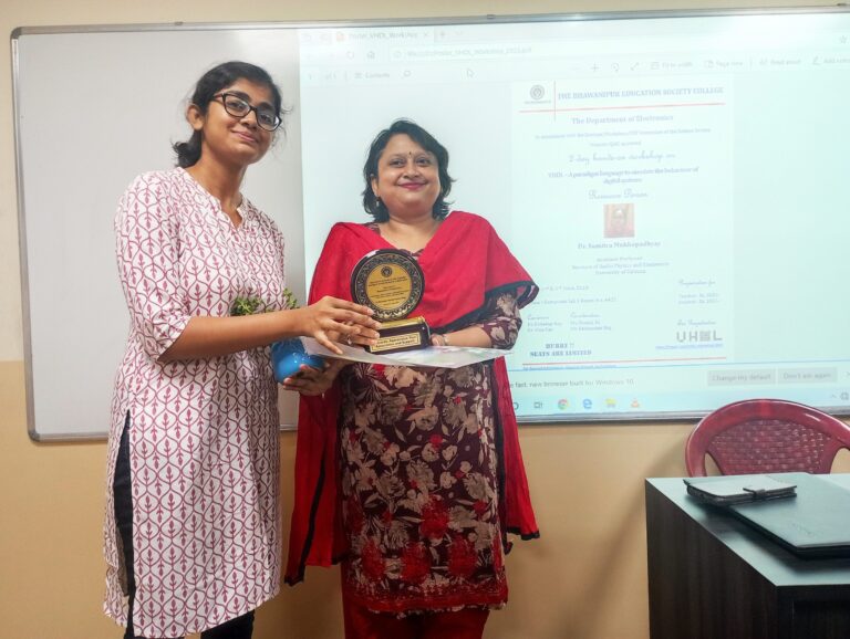 The Department of Electronics of The Bhawanipur Education Society College organized a two-day hands-on workshop on VHDL on 2nd and 3rd of June, 2023. This workshop was directed towards acquiring a sound understanding of the VHSIC Hardware Description Language – VHDL as can be found in Bachelor’s and Master’s level curricula of Electronics across universities. This language is specially designed to model the behaviour of digital systems before actual synthesis of the circuit takes place.