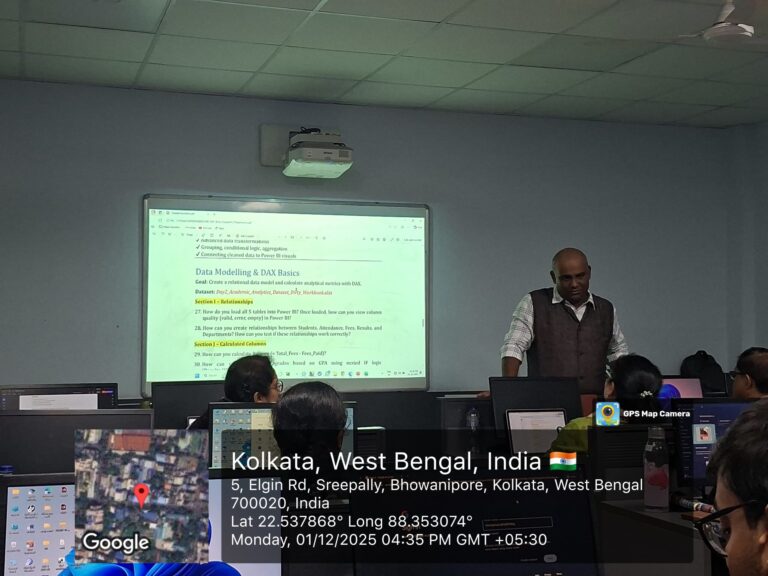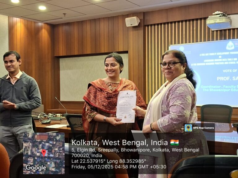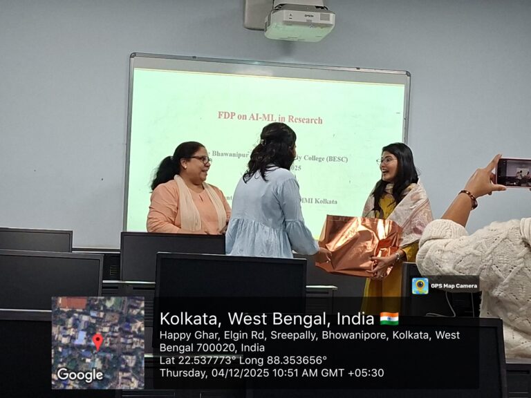 Brief description of the event: The Bhawanipur Education Society College in collaboration with Ramakrishna Mission Vivekananda Centenary College, Rahara, Kolkata, organized a Five-Day Faculty Development Programme on “Leveraging Modern Data Tools and AI for Enhanced Research Practices and Ethical Considerations” from 1st to 5th December, 2025. The event attracted participants, including faculty members from the BESC and other colleges. Day 1 (1st December 2025): The programme began with a welcome address by Dr. Subhabrata Ganguly, Teacher-in-Charge, Prof Dilip Shah, Rector & Dean of Students Affair, The BESC and Dr. Chayan Halder, Assistant Professor, Department of Computer Science, Ramkrishna Mission Vivekananda Centenary College, Rahara, Kolkata, followed by the inaugural session with dignitaries watering the plant. The technical sessions were conducted by Dr. Shirsendu Mukherjee, focusing on Data Handling and Transformation. Participants were introduced to the Power BI ecosystem, Power Query interface, and methods of importing and cleaning data from sources such as Excel, CSV, Web, and Folders. Advanced techniques like merge and append operations, conditional columns, grouping, summarizing, and creating relationships between tables were also covered, enabling participants to build a “department-level performance” dataset. Day 2 (2nd December 2025): The second day, conducted by Dr. Shirsendu Mukherjee, emphasized Data Modelling and Visualization. In the morning session, participants were introduced to relational data models, star and snowflake schemas, calculated columns, measures, and DAX functions such as SUM, AVERAGE, COUNTROWS, CALCULATE, and FILTER. In the afternoon, participants learned dashboard design principles, including charts, slicers, filters, drill-through, conditional formatting, and publishing reports to Power BI Service. By the end of the day, participants successfully created and presented functional dashboards using real or simulated datasets. Day 3 (3rd December 2025): The third day was focused on AI in research practices. In the morning, Dr. Gobinda Roy guided participants on identifying research gaps using Generative AI tools and prompt engineering. The afternoon session, led by Dr. Arunava Bandyopadhyay, provided an overview of AI and machine learning applications in research, particularly in literature review processes, helping participants understand how AI can streamline academic inquiry. Day 4 (4th December 2025): Sessions on the fourth day were conducted by Dr. Indrani Paul, who introduced participants to AI-based tools for literature review, proofreading, and plagiarism detection. The afternoon session focused on systematic literature review (SLR) and bibliometric techniques, equipping participants with advanced methodologies for conducting comprehensive and ethical reviews of academic work. Day 5 (5th December 2025): The final day began with Dr. Gobinda Roy’s session on the role of textual data in research. This was followed by a final assessment and feedback collection conducted by Dr. Ivy Das Gupta, Convener of the FDP and Dr. Chayan Halder Joint Convener, where participants undertook an MCQ test covering all topics. In the afternoon, Dr. Sumanta Dutta delivered a session on Research Ethics and Publication, emphasizing ethical writing practices and strategies for mapping the right journals for publication. The programme concluded with a valedictory session led by Prof. (Dr.) Ratan Khasnabis where he enlightened the participants with his expertise on AI Driven Tools and proper use of AI tools in research. The five-day FDP was ended with a vote of thanks by Prof. Sayan Roy, Coordinator, The Faculty Development Committee, The BESC.