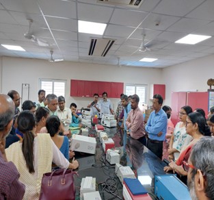 Technical session I of the workshop was arranged in the new building’s 3rd floor physics laboratory. Here teachers were given the opportunity to handle different instruments, some of which are new to them in their colleges. All physics department faculties of our college and our lab assistants Abhijit Dey, Bapan Mondal demonstrated and helped all participants to understand the experiments/set up.