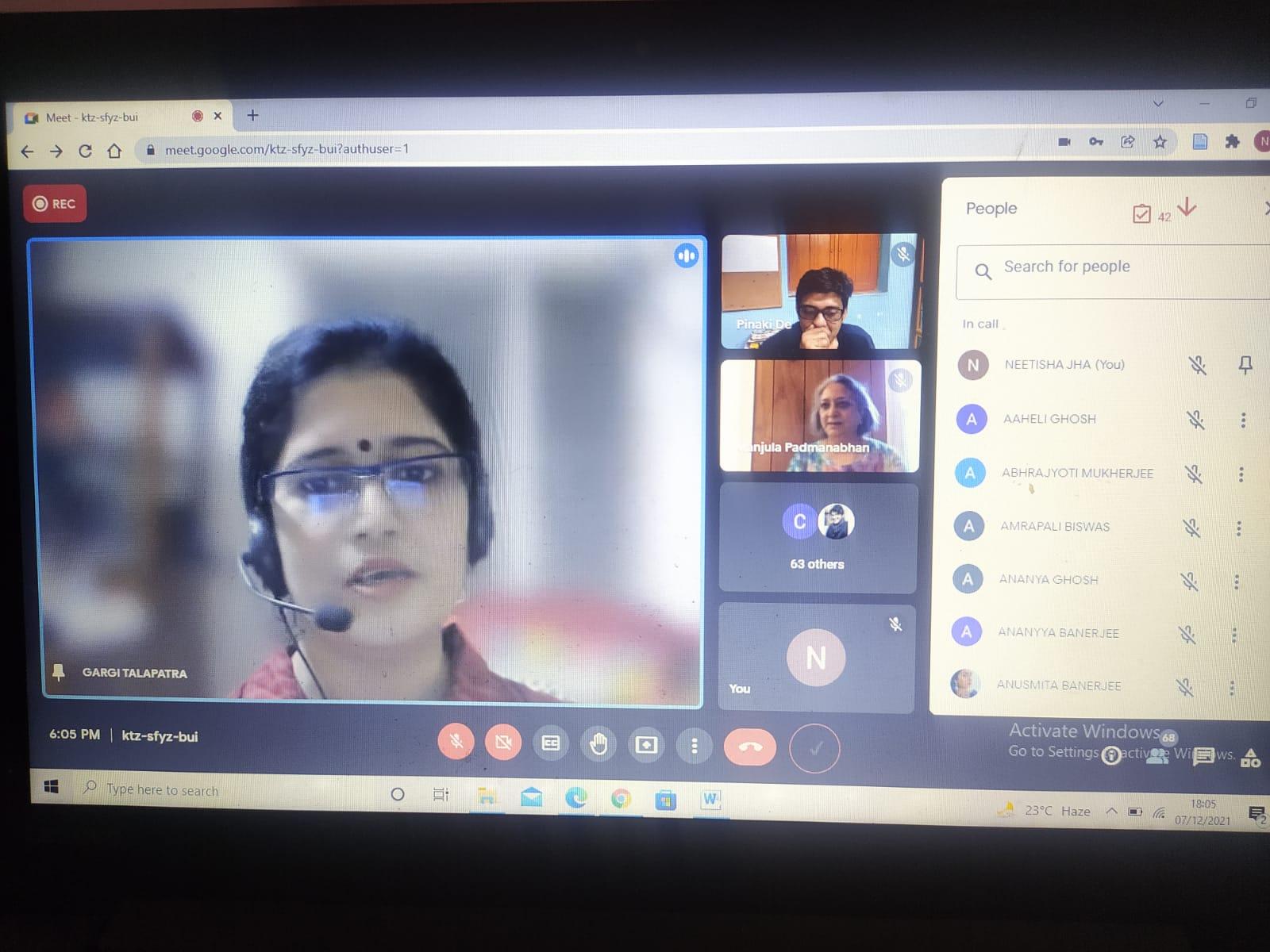 An International Webinar on Graphics was organized by the Department of English, The Bhawanipur Education Society College on Tuesday (07.12.2021) from 6 p.m. to 8.30 p.m. for the Undergraduate and Postgraduate students of the Department of English. The occasion was graced by two speakers of eminence in the area of graphics and illustration – Dr. Pinaki De and Manjula Padmanabhan.