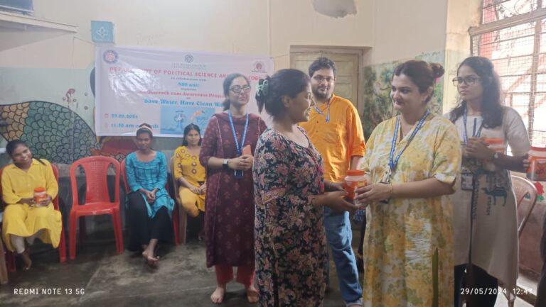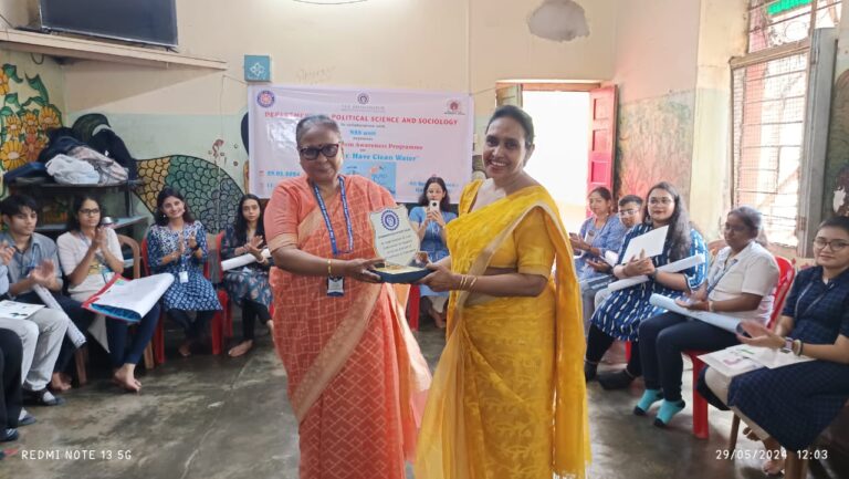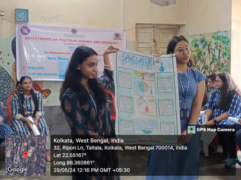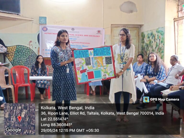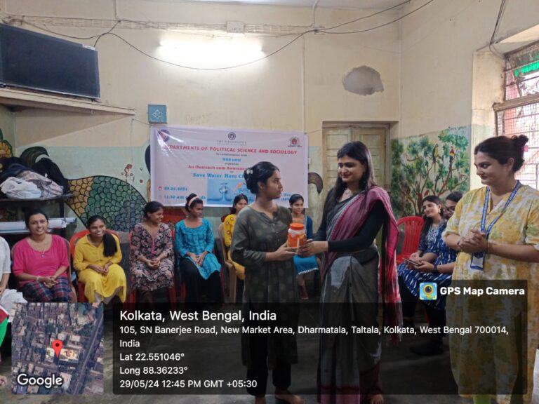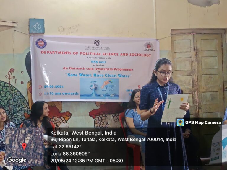 On 29th May 2024, an outreach cum awareness programme on ‘Save Water, Have Clean Water’ was organized by the Departments of Political Science and Sociology in collaboration with the NSS unit of The Bhawanipur Education Society College at the All Bengal Women’s Union (ABWU). The students made presentations on the necessity of water conservation, practical methods to save water, the dangers of drinking contaminated water, and the importance of accessing clean water. As part of the initiative, a water purifier cum cooler was donated to ABWU by the college. Two short films on the conservation of water were screened. A quiz competition for the children of ABWU was organized on this theme. The winners were given jars of Glucon D Orange as prizes. Additionally, an interactive session and a quiz was conducted on the same theme with the residents of the old age home at ABWU. The event turned out to be very informative, engaging and successful.