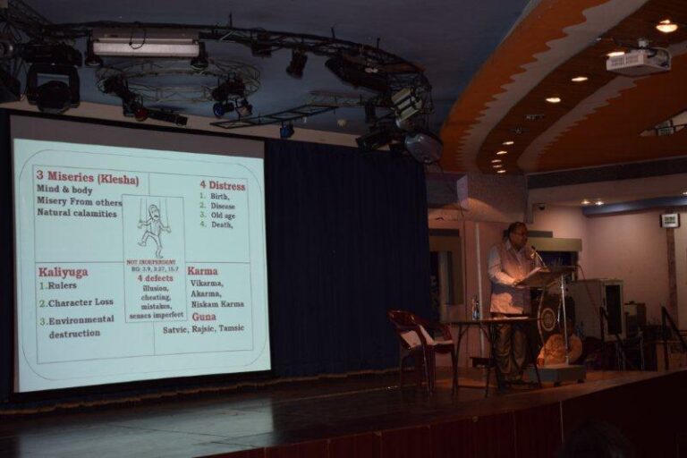 It was an interactive session.Students actively answered to the questions asked and shared their point of view.A quiz was held at the end.Muskan,a first year student, was awarded Bhagwat Gita for seeming to be the brightest student in the session.