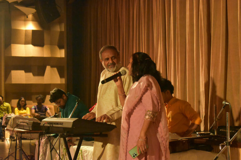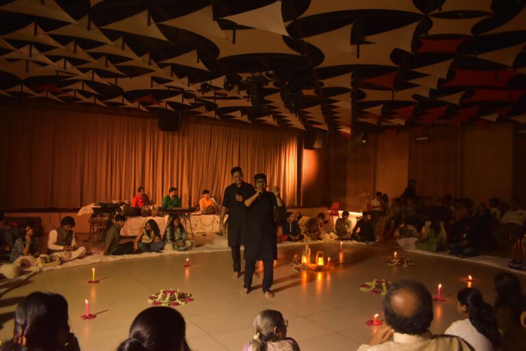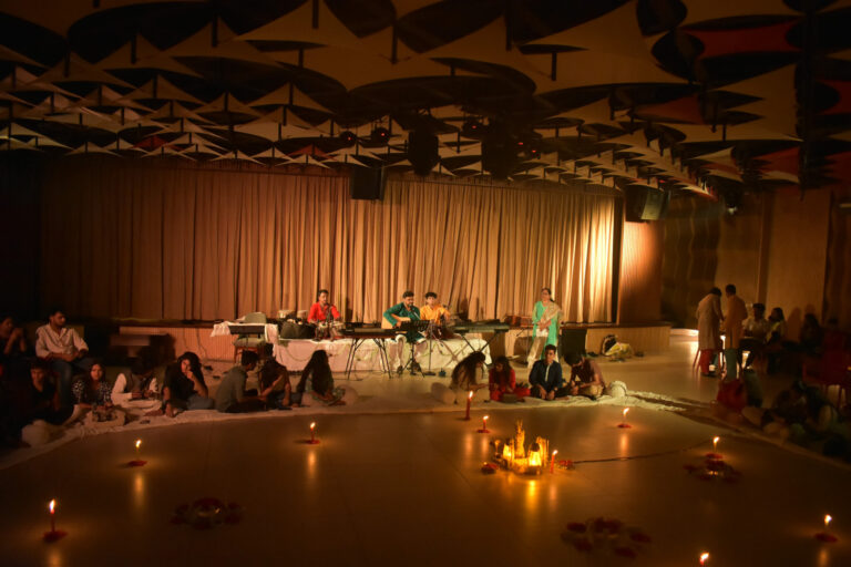 The mehfil reached new heights when our guests for the evening, Zahid Hussain, Palash Chaturvedi, Amir Atta, Bilal Sabir, along with students and faculty members, recited some awe-inspiring shayaris that evoked deep emotions in the hearts of everyone present. To make the evening even more charismatic, our Rector and Dean of Student Affairs, Prof. Dilip Shah, along with Priyamgada Ma’am, performed a heartfelt rendition of ye shamaandRahen na Rahen. As the evening progressed, four of our college students performed beautiful ghazals, eventually leading to a thirty-minute break. Once the event resumed, there was a breathtaking performance by a band called Manzil. Their performance brought a perfect ending to the mehfil. Everyone, including teachers as well as students, jammed, vibed and danced their hearts out.   REPORTER – Koena Chatterjee