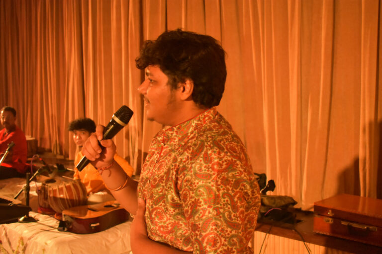 They say we read and write poetry because we are members of the human race, and the human race is filled with passion. As important as academics are, poetry, literature, and art hold an equally crucial role for us to make sense of the world and the people around us. Keeping this thought in mind, The Bhawanipur Education Society College organised an amazing evening filled with ghazals and shayaris at the Concept Hall of the college campus on May 20th 2025, from 4:00 P.M. onwards. The event was ideated, organised, and hosted by Vedant Gupta, a second-year BESC student, along with passionate volunteers who attempted to bring the old-school mehfil setting to life, where poets used to gather and share their love for words. The hall was decorated with lanterns paired with jasmine garlands, candles surrounded by rose petals, with the attendees sitting on floor cushions. Andaaz-E-Shayrana commenced with the mentor of BESC’s music collective of Crescendo, Mr. Saurabh Goswami, gracing the audience with phir le aya dil, followed by the Indian Idol finalist, Sonakshi Kar, who is currently a student at The BESC, performing two heartfelt ghazals, namelysalona sa sajan hai aur main hoonandajee rooth kar ab kahan jayega. The event was truly made special with the absence of any competitiveness, as each person witnessing and performing felt the raw emotion and honesty behind the art form. Dr Rekha Nariwal, faculty at The BESC, performed a ghazal by Mehendi Hasan calledMujhe tum nazar se gira to rahe ho. Prof. Devina performedHoshwalon ko khabar kyaand Prof. Vasundhara Mishra rendered a beautiful song called Tum ko Dekha Toh Yeh Khayal Aaya.