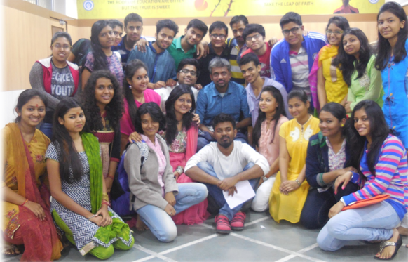 In the first session of the first day Mr. Debashish Sen Sharma was invited as the guest faculty. Mr.Debashish is a renowned theatrician and director of Tollywood movies. He interacted with students and explained that every individual is inherited with certain qualities both negative and positive. Every individual needs to get acquainted with our own self before portraying any character in a play. He explained the students that one needs to be aware of their inhibited creations to create a new aura. Students were also taught voice modulations and coordination skills.