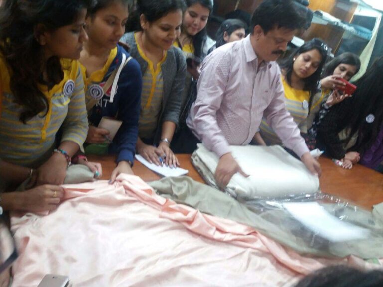 On 13 January, an early morning Road trip to Surat in a double-decker sleeper was an added delight for the students. Upon reaching the hotel in the evening we moved to the textile industry visit. Textile industry was an interesting experience as they showed us how saris are made from scratch. One of them was ChandraLal Manicklal Zariwala dealing in synthetic and polyester clothing. Then we visited Randhir Dying where we were shown how saris are dyed and printed. The girls were taken by the hosts on a short yet exhausting shopping spree at and local shop where they splurged on saris and dress material, Surat being the textile hub.