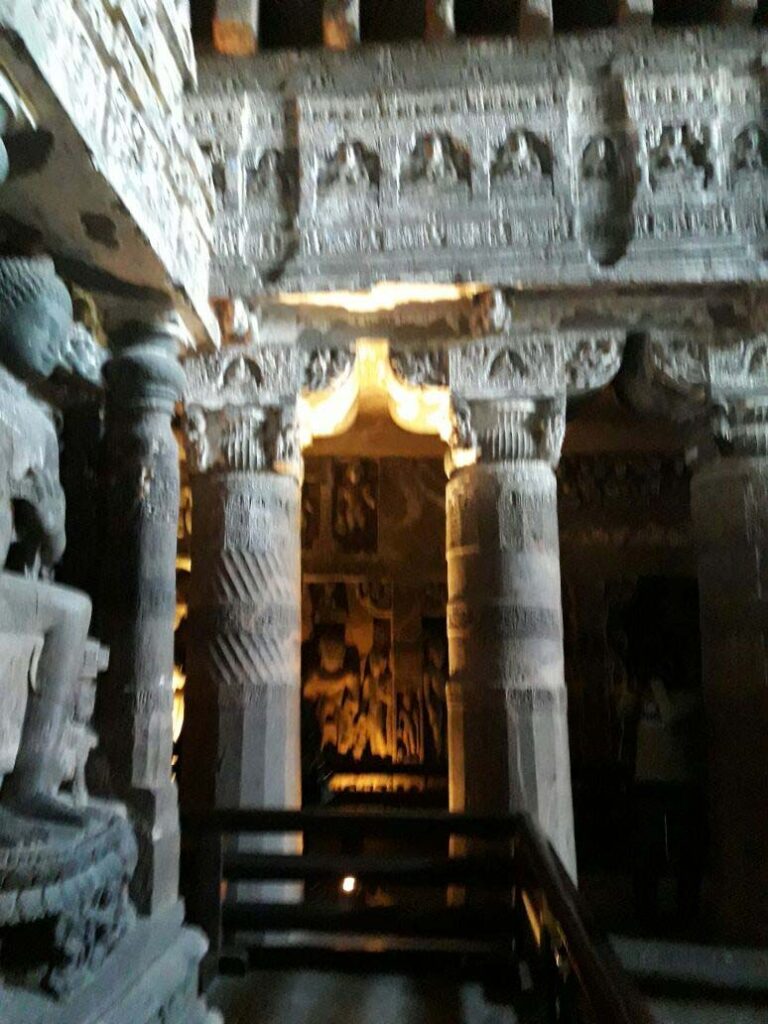 Upon insistence from our host we decided to trek down from viewpoint to the Ajanta Caves. We did not regret that trek one bit since it was a picturesque and breath-taking. Our visit to the Ajanta Caves was an enthralling experience. The caves were mysterious and yet gave a sense of life back in the second century B.C void of electricity. The rock sculptures and paintings filled the caves which even have the detailing of expressions and Jewels of men and woman of ancient times.