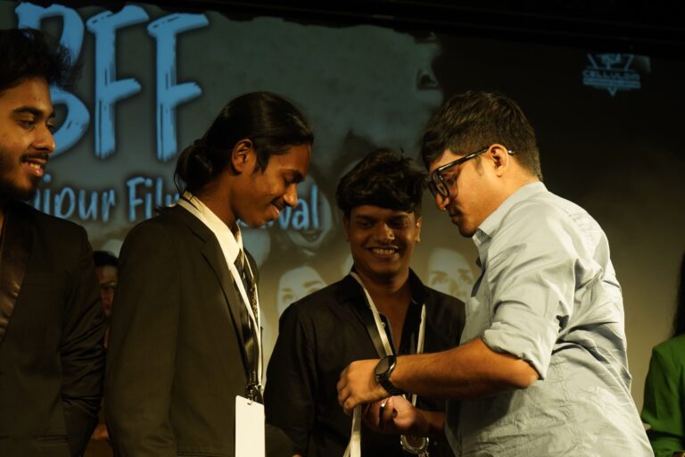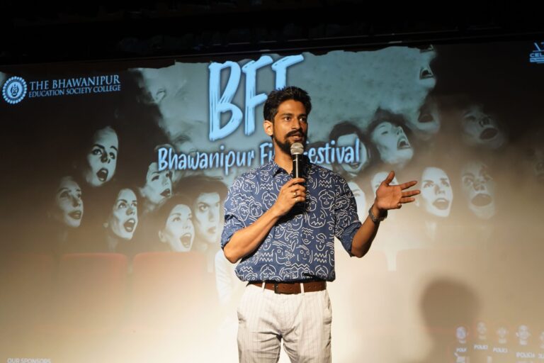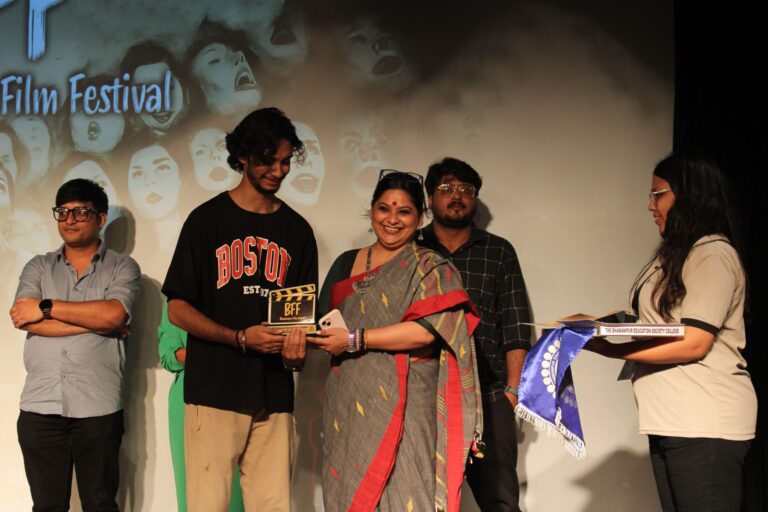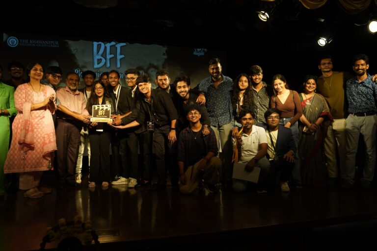 FILM POSTER MAKING: The next event was the Film Poster Making competition. Around six colleges participated. All participants were expected to design a film poster within a stipulated amount of time and showcase their creativity. Some posters revolved around horror imagery, while others represented classic Bollywood films, successfully offering variety to the audience. The judge for this event was Ekta Bhattacharya. The first runner-up was Shree Agrasain College, and the emerging winner was the main team of The Bhawanipur Education Society College. SHORT FILMMAKING: One of the most awaited events was Short Filmmaking, which commenced around 3:00 P.M. in the Concept Hall of the college campus. This event was judged by Shaket Banerjee, Debopriya Mukherjee, and Ritwika Choudhuri. The time limit for each film was restricted to fifteen minutes. Each submission was played once, followed by a question-and-answer round, which the participants tackled smartly. The themes ranged from struggles during poverty to self-discovery in the fast-paced modern world. The short films left a significant impact on the minds of the audience, making the event a success. The second position was bagged by the main team of The Bhawanipur Education Society College, while the winning position was secured by the OTSE team of The Bhawanipur Education Society College. REEL MAKING: The concluding event of the Bhawanipur Film Festival was the Reel Making competition. The theme for the participants was ‘Leaving Footprints.’ This event was judged by Altamash Hamid, Upahar Biswas, and Suprovo Tagore. The reels were showcased in front of the audience and were followed by a feedback round by the judges. The participants captured the essence of the given topic by blending various themes, including friendships, college life, and love. The second position was secured by Shree Agrasain College, and the winners were the main team of The Bhawanipur Education Society College.