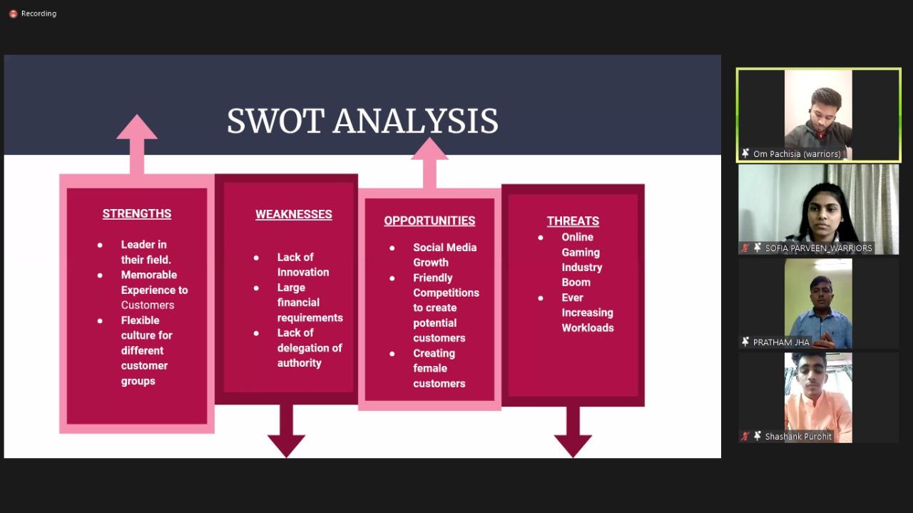 The case study dealt with the Pestel, SWOT analysis, KPIS and various other technical terms of B-School. The competition ended at around 1 pm. with the same motivation as it began by our judges and the constants hard work and of the students in-charge of the event.