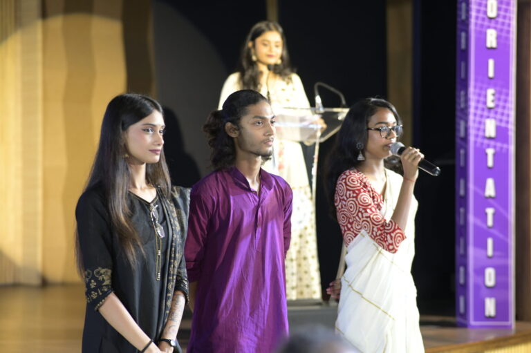 Life turns a full circle as with heavy hearts and teary eyes, we bid farewell to our graduating batch of 2024 while at the same time embracing the arrival of our freshers with open arms. The Orientation ceremony at The Bhawanipur Education Society College began on 2nd August 2024 at 10 A.M. with over 200 students in the first slot and saw a crowd similar in strength in each of the rest 13 slots over the next five days, till the 7th of August 2024. The college welcomed the newcomers through a session that was an hour and a half long; depicting all the limitless possibilities that the college provides for these young talents. The young inquisitive minds experienced their first day in college, i.e., Orientation Day with the theme of “Purple Patch” this year. The Orientation Programme went on for five days which included the 2nd, 3rd, 5th, 6th and 7th August 2024, and took place in the Concept Hall of the college. All 14 slots were divided to accommodate students from the disciplines of Commerce (Morning), Commerce (Afternoon and Evening), Arts, Science, and Business Administration (BBA). The hall and the corridors were all decked up in purple decorations to welcome the neophytes into a new chapter of their lives.