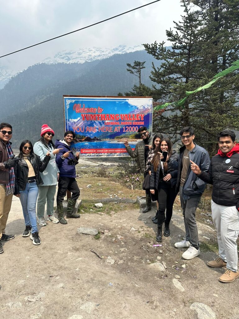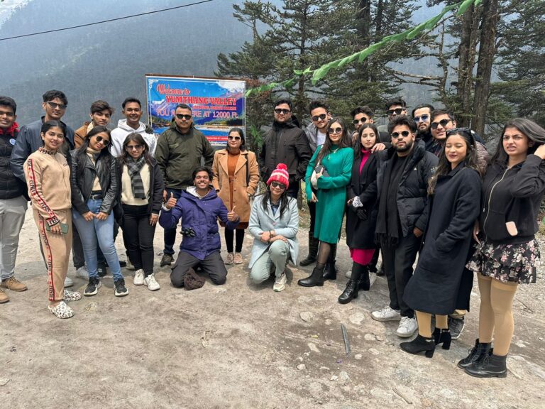 The Bhawanipur Education Society College organised an excursion to numerous locations in Sikkim from 23rd of April to the 30th of April 2023 with 60 students overseen by four faculties: Mr Aditya Raj, Mr Harshit Chokhani, Ms Uzma Khan, and Ms Sakshi Shaw. Everyone who was a part of the trip boarded the train from Sealdah station at 11:20 P.M. in the night and reached the New Jalpaiguri Junction railway station around 9:30 A.M. The train journey was full of fun and excitement, and a group picture at the station was captured to mark the beginning of the immemorial journey, which celebrated the spirit of Umang’s success. The tour was a seven-day journey where 7 days and 6 nights were spent in different parts of Sikkim such as Pelling, Gangtok, Lachung and Reshikhola. Sikkim, also known as Indrakila, or the garden of the god Indra, is a picturesque land nestled in the heart of the Eastern Himalayas were Buddhism and Tibetology blend. Its avant-garde surroundings and breathtaking view of Mt. Kanchenjunga and the Shangri-La make it a wonderland for mountain lovers. DAY 01 (24/04/2024): NEW JALPAIGURI JUNCTION RAILWAY STATION TO PELLING A four to five-hour journey via roadways was covered from New Jalpaiguri Junction railway station with a one-hour halt taken for lunch, the tourers reached Pelling around 4 P.M. on the 24th of April 2023. A hotel was taken for the students to stay in, and respective rooms were allotted to everyone for freshening up. In the evening, everyone was allowed to roam around the helipad and local area to explore and visit the nearby restaurants where they enjoyed the famous cuisines of the place as supper. A lavish dinner awaited everyone who returned to the hotel by 8:30 P.M. After that, all the people gathered on the rooftop to groove to the thrilling music and sang their hearts out to the melodious tunes of the guitar. DAY 02 (25/04/2024): PELLING SIGHT-SEEING AND DROP AT GANGTOK On the second day after breakfast, all the excursionists visited the Chenrezig statue and skywalk, a tourist attraction in the West Sikkim district of Pelling. Here they encountered the mind-boggling sights of one of the world’s tallest statues, the Bodhisattva Chenrezig, being 137 feet (42 metres) tall and India’s first-ever glass-bottomed skywalk situated at a level of 2,195 metres (7,200 feet) above sea level. Then, everyone was taken to the Namchi town of Sikkim to get a glimpse of the divine holy shrine of Shri Char Dham Temple, also known as Siddheshwar Dham which is built at the summit of Solophok Hill and is a replica of the twelve Jyotirlingas and Char Dhams of India. It was a bewildering experience to catch sight of Lord Shiva’s massive statue that stands 108 feet tall along with the girdle of twelve Jyotirlingas namely Somnath, Mallikarjuna, Mahakaleshwar, Omkareshwar, Kedarnath, Bhimashankar, Viswanath, Vaidyanath, Nageswar, Trimbakeshwar, Grishneshwar, and Rameshwar in a single temple. From here, the next sight to see was the Temi Tea Estate. The aromatic fragrance of tea buds and the panoramic view of Mt. Kanchenjungha made this destination an ideal place for naturalist photography. An evening meal of freshly brewed tea while sitting amidst the tea garden and sloping hills was rejoiced by the sightseers of the tour. After a long day, the excursionists stayed in Gangtok at the Hotel Zemu and Hotel Blissful. DAY 03 (26/04/2024): GANGTOK TO LACHUNG After an early breakfast in Gangtok, the fellow travellers departed from Gangtok and travelled through Tung Road to reach Lachung before night. On the way to Lachung, the tourers visited Tashi View Point and Seven Sisters Fall. The bewitching Tashi Viewpoint is the perfect location to get lost in the breathtaking surroundings, which include Gangtok town, the valleys, and the Himalayas. The greatest views of the sunrise and sunset can be found at this well-known tourist destination, which lies 8 km from the town. The Seven Sisters Waterfalls is situated approximately 32 miles from Gangtok on the Gangtok-Lachung Highway. Seven Sister is a well-known waterfall, as the name implies, when viewed from a distance, the seven individual waterfalls are harmoniously positioned laterally on a broad, craggy cliff that appears to be separate. Once it rains, it becomes an absolute must-see location in Gangtok, as the falls spring to life offering an exhilarating spectacular view. The students and the teachers enjoyed an overnight stay in Lachung and had dinner in the freezing and chilly weather of Lachung. DAY 04 (27/04/2024): LACHUNG TO GANGTOK On the fourth day, after breakfast, the students along with the teachers left Lachung and went to explore the natural beauty of Yumthang Valley, which is situated in the North Sikkim region of Sikkim state in India, Yumthang Valley, also known as the Sikkim Valley of Flowers sanctuary. The excursionists were mesmerised to see a natural sanctuary like this which was filled with a river, several hot springs, yaks, and grazing pastures on undulating meadows surrounded by the Himalayan mountain. It is located 150 kilometres (93 miles) away from Gangtok, the state capital and it rises to a height of 3,564 metres (11,693 feet) above sea level. The next destination was Yumesamdong Zero Point. Tourers have long found Yumesamdong’s snow to be very captivating. Yumesamdong, sometimes referred to as Zero Point, is situated quite close to the Chinese border, at an elevation of about 15,300 feet. About 26 kilometres separate it from Yumthang Valley, another well-known location in North Sikkim. Zero Point is around an hour’s journey from Yumthang Valley and this trip along the winding mountainous roads amidst North Sikkim’s rugged landscape is just as stirring as the location. When one visits Yumesamdong Zero Point, one feels as though one is in a place all by oneself, surrounded by snow and majestic mountains. Yume Samdong in Sikkim remains snow-laden throughout the year. At night, everyone returned to Gangto