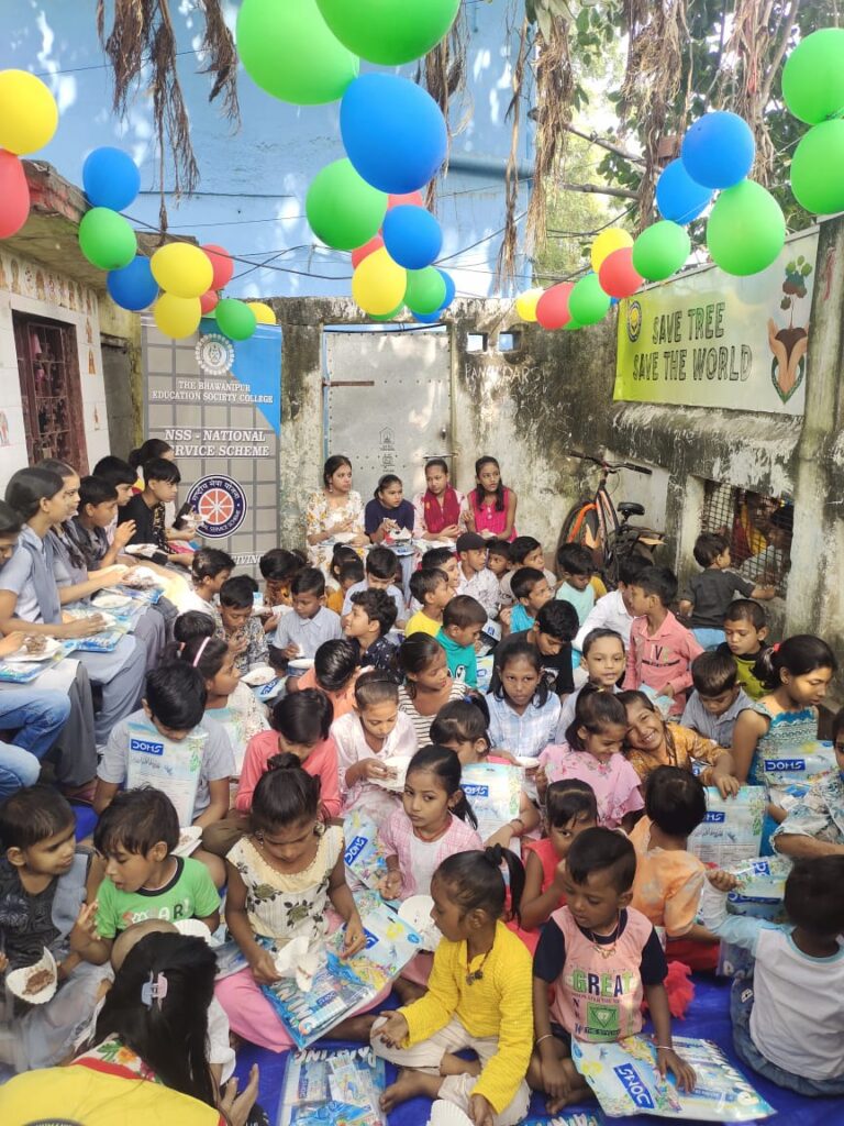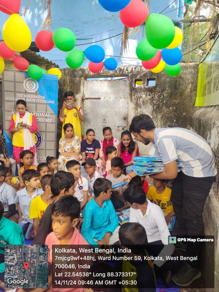 Brief description of the event: The NSS unit of The BESC celebrated Children’s Day on November 14, 2024, at Panch Darshiya Vidyalaya in the Tiljala slum. The NSS unit distributed educational stationery to children according to their needs, promoting learning and education. The celebration demonstrated the NSS unit’s commitment to outreach and community service, focusing on supporting vulnerable populations. Volunteers engaged with the children through interactive games, storytelling, and creative activities, promoting bonding and fun learning experiences