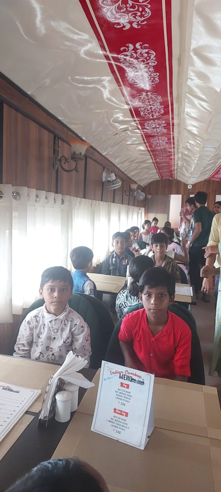 The primary objective was to provide an enjoyable and interactive educational experience that sparked curiosity about the history and operations of the Indian Railways and broadened the children’s knowledge and appreciation for the same. The museum features old locomotives, vintage carriages, and artifacts showcasing the evolution of Indian Railways. There are photographs depicting the transition from steam engines to electric engines and from small coaches to AC coaches. The exhibits also include old railway uniforms, models of railway track, track changing levers, metro rail, and a life-like replica of the Howrah Railway Station. The “Howrah Station” model also offered a toy train ride around the museum. While waiting for the toy train ride, an interactive session ensued where each child introduced themselves, shared their favourite activities, and showcased their talents. The day concluded with a delightful lunch at the rail coach-turned-restaurant within the museum. The program ended with a group picture in front of a vintage locomotive.