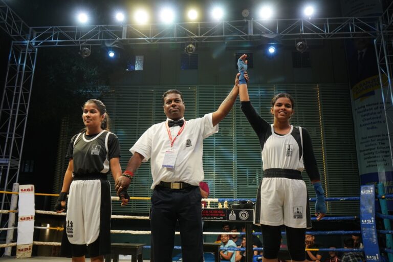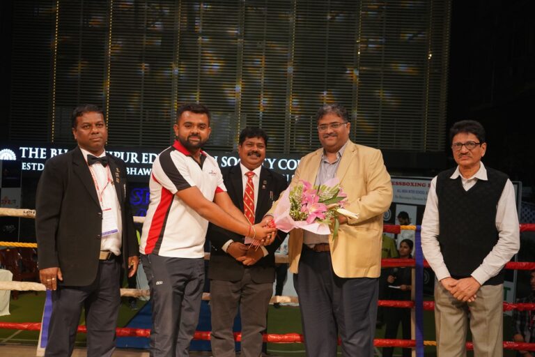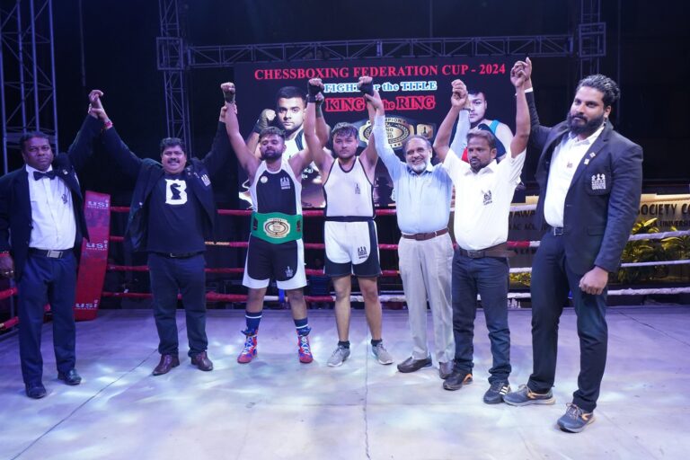 The Bhawanipur Education Society College played host to one of the most mentally and physically demanding events on the collegiate circuit- The Chessboxing Federation Cup 2024 which was held from 16th to 19th February 2024 at the College Turf. Combining the strategic finesse of chess with the raw intensity of boxing, this three-day spectacle brought together some of the brightest minds and fiercest fighters from across the country. The hybrid sport was envisioned in 1992 by cartoonist Enki Bilal, and chess boxing was featured in his graphic novel Froid Équateur. Iepe Rubingh brought the concept to life, fighting under the name Iepe, the Joker. Rubingh felt the method described in the book, a boxing match followed by a chess match, was impractical. He instead decided on alternating rounds of chess and boxing. The earliest chessboxing reference occurred in London in 1978 when two brothers Stewart and James Robinson began chessboxing at the Samuel Montagu Boys Club. The sport today is governed by the World Chess Boxing Organisation (WCBO), whose strapline is “The smartest toughest (wo)man on the planet.” This fantastic sport of mind & physique, “Chessboxing” was introduced in India by renewed martial artist, Mr. Montu Das as its Founder President, CBOI in the year 2011. The first day of the championship began with the opening ceremony which was inaugurated by Mr. Miraj D Shah, Vice Chairman of The Bhawanipur Education Society College, and Mr. Jitendra Shah, one of the trustees of the BESC College. The ceremony began with a welcome felicitation of Mr. Miraj D Shah by Asutosh Kumar Jha, later Mr. Jitendra Shah was called upon the stage to felicitate the Honorary President of WCBO (World Chess Boxing Organisation) and President of CBOI (Chessboxing Organisation of India) – Mr. Montu Das and General Secretary of CBOI- Mr. Pradip Marik, respectively. After the guests were seated Flames collective of the college presented a power-packed dance performance to pump up the enthusiasm of the crowd. The tournament kicked off on a high note as participants from various colleges showcased their skills in both chess and boxing. The first day primarily featured preliminary rounds, with competitors vying for early victories to secure a spot in the later stages of the tournament. The fixtures for the matches were based on different weight categories for boys and girls respectively. Further into the championship the Chief Guest for the day- Mr. Keshav Bhajanka, Executive Director of Century Plyboards India Ltd accompanied by Mr. Tushar Bhajanka, owner of Star Cement was welcomed to the ring. The Chief Guests witnessed the match for the title of “QUEEN of the RING” played by Arundhati Nair and Mahamaya Kanti under the weight category (-55 kg). Before the match began the title belt was shown around to the crowd by the referee in the ring. Towards the end, the title was won by Arundhati Nair who was later handed over the belt by Mr. Jitendra Shah. As the competition entered its second day, the stakes grew higher, and the thrill of the game reached new heights. With the field narrowing down, every match became a battleground where participants left nothing to chance. Each match was a testament to the unique blend of mental acuity and physical prowess demanded by Chessboxing. Participants also competed in a similar competition known as Chessboxing Fit which encourages punching on the punching bag for a minute and then playing chess for the next 5 minutes. The day ended with matches continuing to the next day. The final day of the tournament dawned with a sense of anticipation as the remaining contenders prepared to face off in the ultimate test of skill and endurance. The stage was set for the crowning of the “KING of the RING” titles. The first “KING of the RING” match was played between Kingshuk and Md Hamza under the weight category of (- 60 kg). The players entered the stage fiercely in their gowns and started off the battle with a round of chess followed by boxing. After an intense fight, the title was grabbed successfully by Kingshuk. The second “KING of the RING” match was played between Asutosh Kumar Jha and Rohit Chowdhury under the weight category of (-90 kg). This nail-biting match captured the crowd’s attention, the campus was filled with their roars while listening to the excellent commentary by the commentators. The winner of the second title was Asutosh Kumar Jha. At the end of the matches the Rector and Dean of Student Affairs, Prof. Dilip Shah was called upon the stage to hand over the title belts to the respective winners Kingshuk and Asutosh. Prof. Shah was then asked to felicitate the referees and officials of the championship by handing over mementos to them. Further, a special thanks was extended to AMRI Hospitals for providing constant medical support for 3 days and to Black Tiger Events for sponsoring LED. The day ended successfully with the prize ceremony where winners of various weight categories were called upon the podium and handed over the medals. The winners were as follows. CHESSBOXING MAIN RESULT