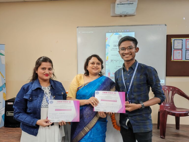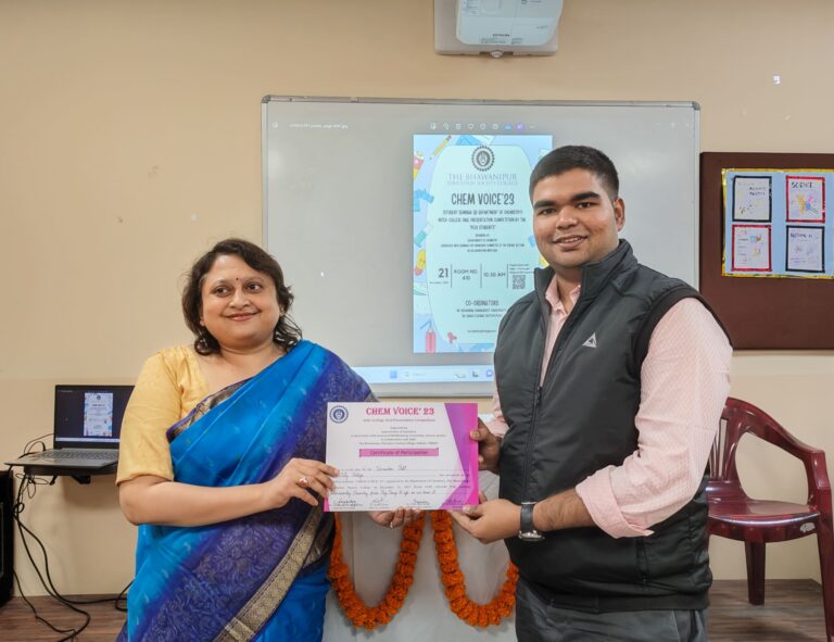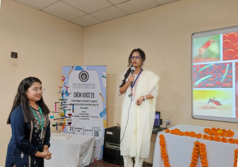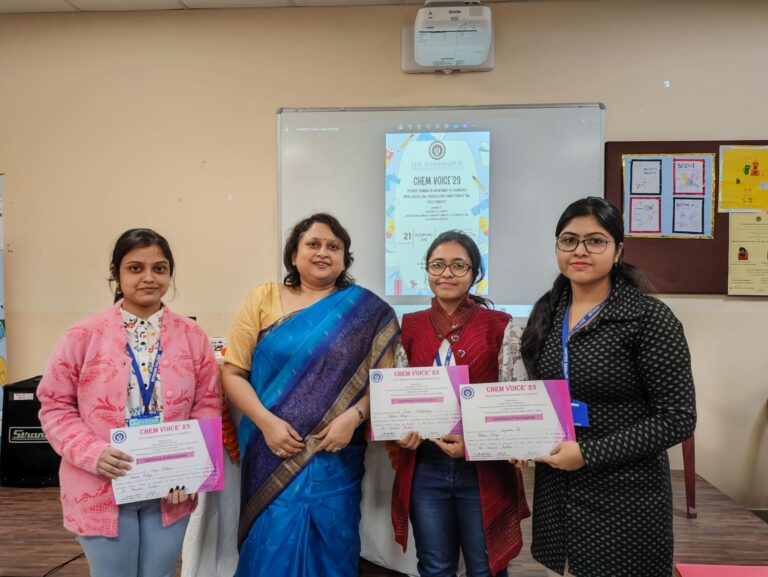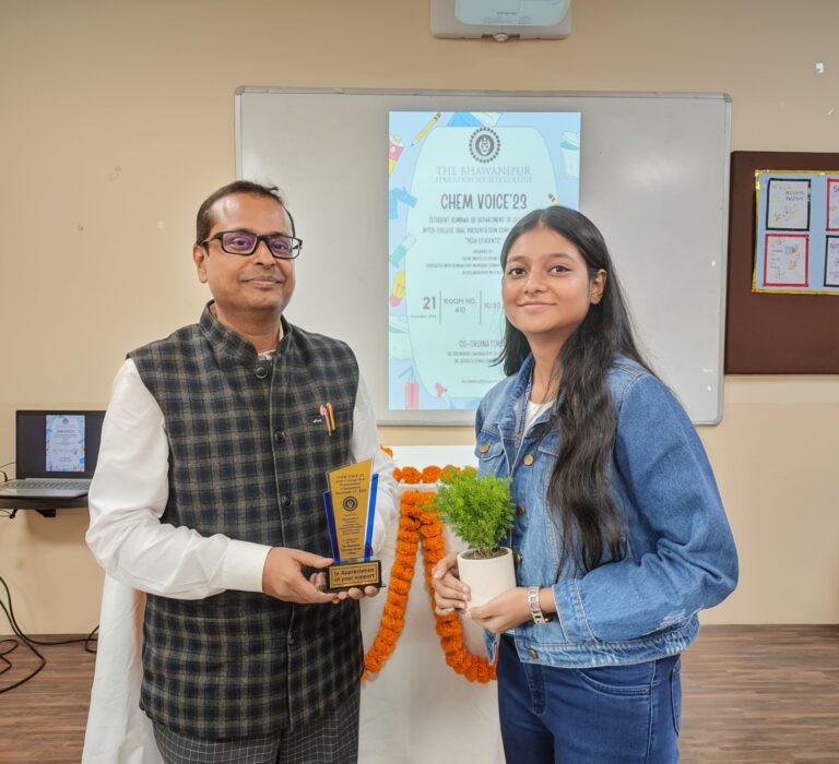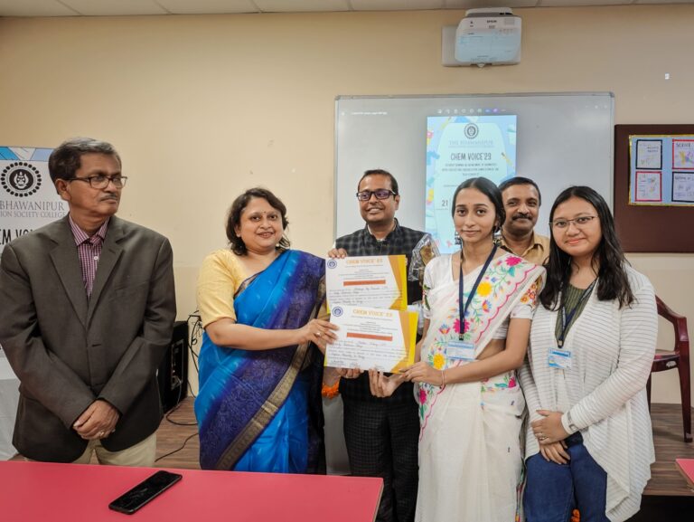 CHEM VOICE 2023 is an Inter-College Oral Presentation Competition by the “Peer Students” was organised by Department of Chemistry, associated with Seminar/FDP/Workshop Committee of the Science Section, in collaboration with IQAC, The Bhawanipur Education Society College, Kolkata. This is the yearly event of the Dept. of Chemistry. A total of 11 groups from 9 different colleges along with our college enthusiastically took part in the competition, showcasing their exceptional skills and knowledge in various facets of chemistry.