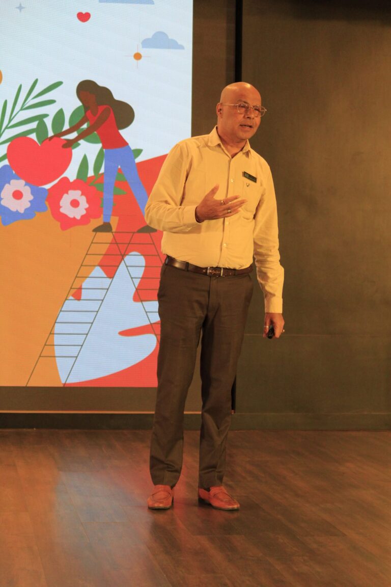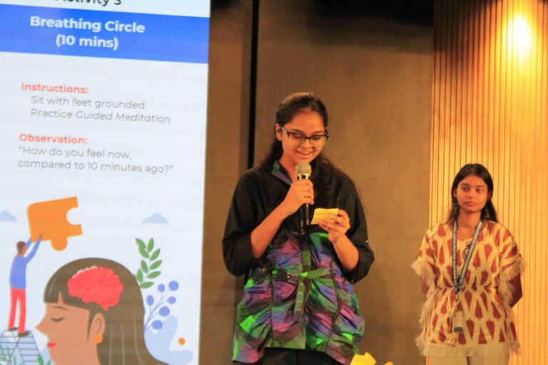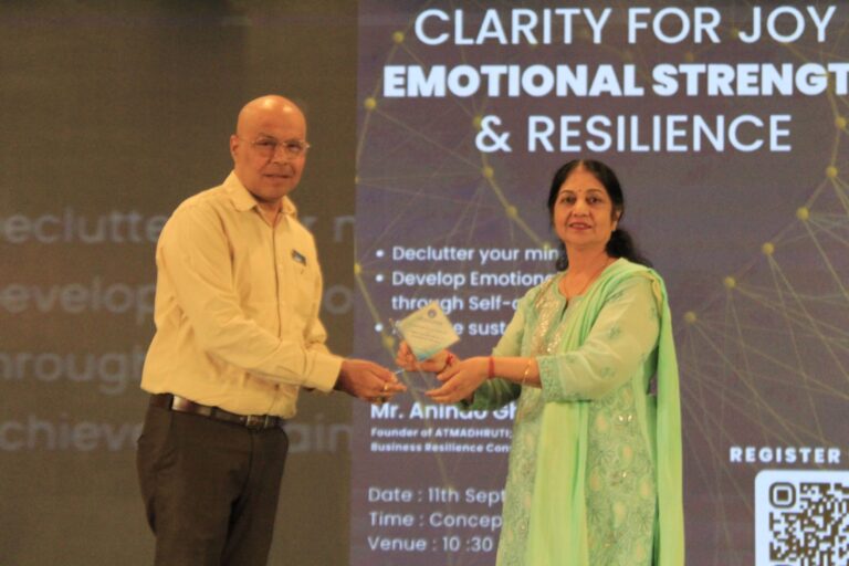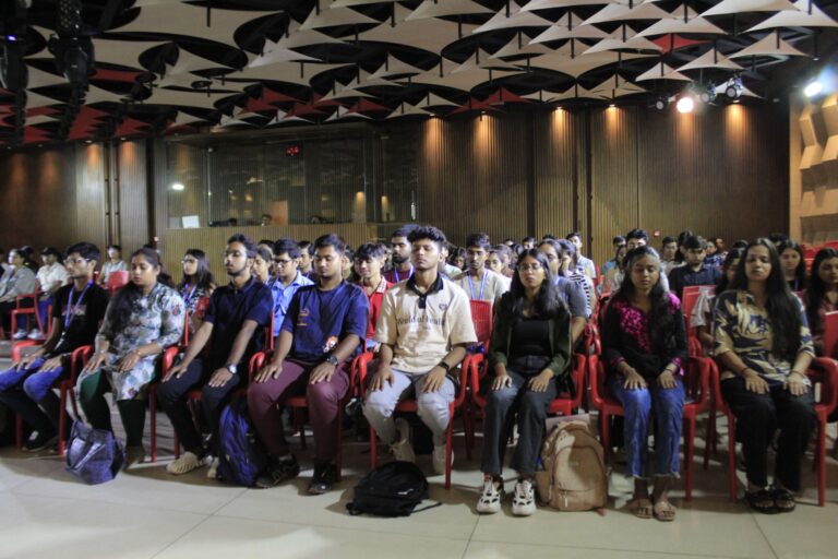 The seminar was conducted by Mr. Anindo Ghosh, founder of Atmadhruti, an organisation that endeavours to empower individuals to build resilience and harmony within themselves and with the world around them. He is also a well-known consultant, certified life and resilience coach, and motivational speaker. The seminar began with a quick introduction by the anchor. Following this, the Rector and Dean of Student Affairs, Prof. Dilip Shah, was invited to share a few words. He shed light on work-life balance, IQ, and EQ, emphasising that all of these are sometimes more important than academics. He concluded his speech with a haunting line: “Zindagi se badi koi saza hi nahi hoti, kya zulm hai pata hi nahi, itne hisse mein bat gaya hoon main, ki mere hisse mein kuch bacha hi nahi.” Distinguished members of Atmadhruti were also present. As a life-planning organisation, they are committed to helping people achieve balance across their personal and professional lives. After the speech, the keynote speaker, Mr. Anindo Ghosh, began interacting with the students. He engaged them in an activity involving anonymous messages about fear, written on unnamed chits. This was followed by a guided meditation, where everyone closed their eyes and allowed their thoughts to flow freely.