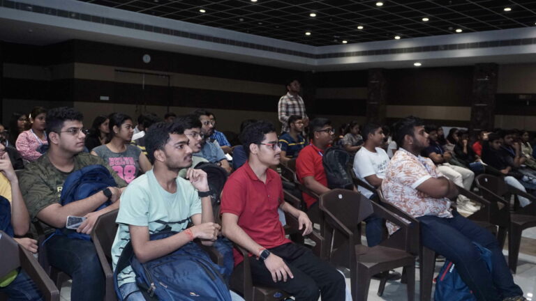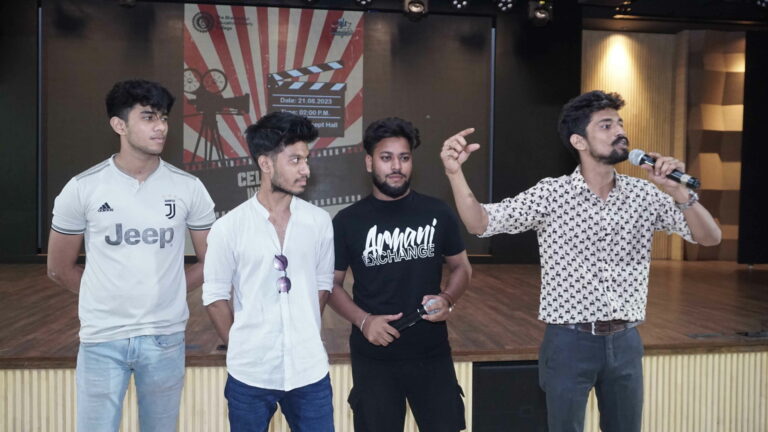 CELLULOID – The induction for the Celluloid collective was held on August 21st 2023 where 150 students were inducted. The event featured empowering speeches from the Dean of Student Affairs, Prof. Dilip Shah, Mr.Suprovo Ganguly (mentor of Celluloid), and collective representatives. The essence of celluloid, including aspects like cinematography and dialogue writing, was explained through a short film presentation. The event concluded with a promise of upcoming workshops, offering valuable learning opportunities to the attendees.