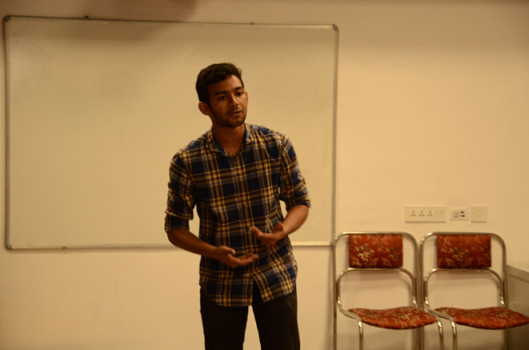 Coming to the last event of the day, JAM and Verteez. JAM puts to test one’s proficiency in English along with the knowledge of grammar. Whereas, Verteez is the classic old word game. It is left up to the moderator to decide the number of rounds. Two participants from each college constituted each team with Pranab Mukherjee taking the position of the moderator. The event was won by