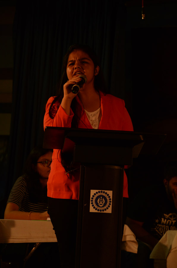 The next event, Block and Tackle is a break from the conventional form of debating. Here, one needs to speak both for and against the motion. Participants start off speaking for the motion and when the moderator says ‘block’, they have to reverse your motion. ‘Tackle’, in the context would mean to return to the original motion. 11 teams of 1 member each participated in the event representing 10 colleges. JUCMS represented by Sudarshan Modi triumphed over Srija Pal from JDBI, the 1st Runner Up. The Second Runner up position was held by Muskaan Kedia of BESC.