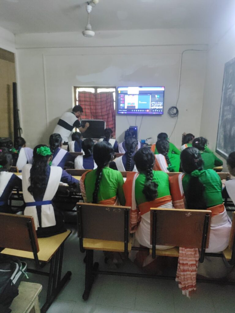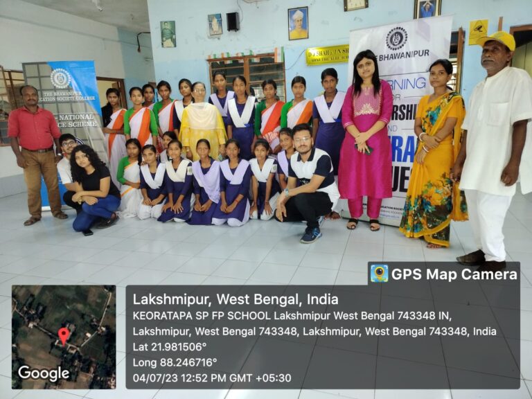 Education is an essential component in a child’s life as it enhances their skill, personality, and attitude. It is the foundation upon which their future is built as children are the future of our nation. With this belief The NSS unit of The Bhawanipur Education Society College commenced their 3 months ongoing project ‘Connecting Dots 2.0’ on 4th July 2023 at Keoratala Basanabala Girls High School. The project aims to upskill the Conversational English & General Knowledge subjects that will help them to learn Spoken English and improve their general knowledge which will make them self-confident and give them the platform to connect to people from the outside world. They will have weekly one class for both Spoken English and General Knowledge which will be recorded, and an assessment test will be taken towards the end based on that students would be given a certificate. Prof. Gargi, Swapna Ben Patel (Trustee of the School) along with 3 Students of the College went to the school a 4 hours drive to help the school management in setting up the equipment, for a smooth flow of online classes. The other 2 volunteers of NSS took the online class for week-1. Altogether 14 volunteers are participating in the 3-month project. We extend our heartfelt appreciation to all the NSS volunteers who selflessly contributed their time and efforts to make this program a success. Their dedication and commitment to education are commendable. We also express gratitude to Keoratala Basanbala Girls School for providing the necessary support and cooperation throughout the program. Together, we believe in empowering students and creating a positive impact on their educational journey. Reported by – Kripa Sahal