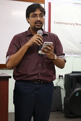 The first technical session started at around 11 am with a talk of Dr. Indranath Sengupta from IIT Gandhinagar. The title of his talk was “The Coin Exchange Problem”. Dr. A. Deb Ray from the University of Calcutta was the second speaker of the day who discussed the resemblance and difference between C(X) and the ring of Baire one functions on a topological space X. In the second technical session, Dr. Jaydeb Sarkar from ISI Bangalore delivered his talk on Differentiation. The title of his talk was “Differentiation, from real to complex”. The third technical session started at 3.45 pm in which several participants presented their papers.