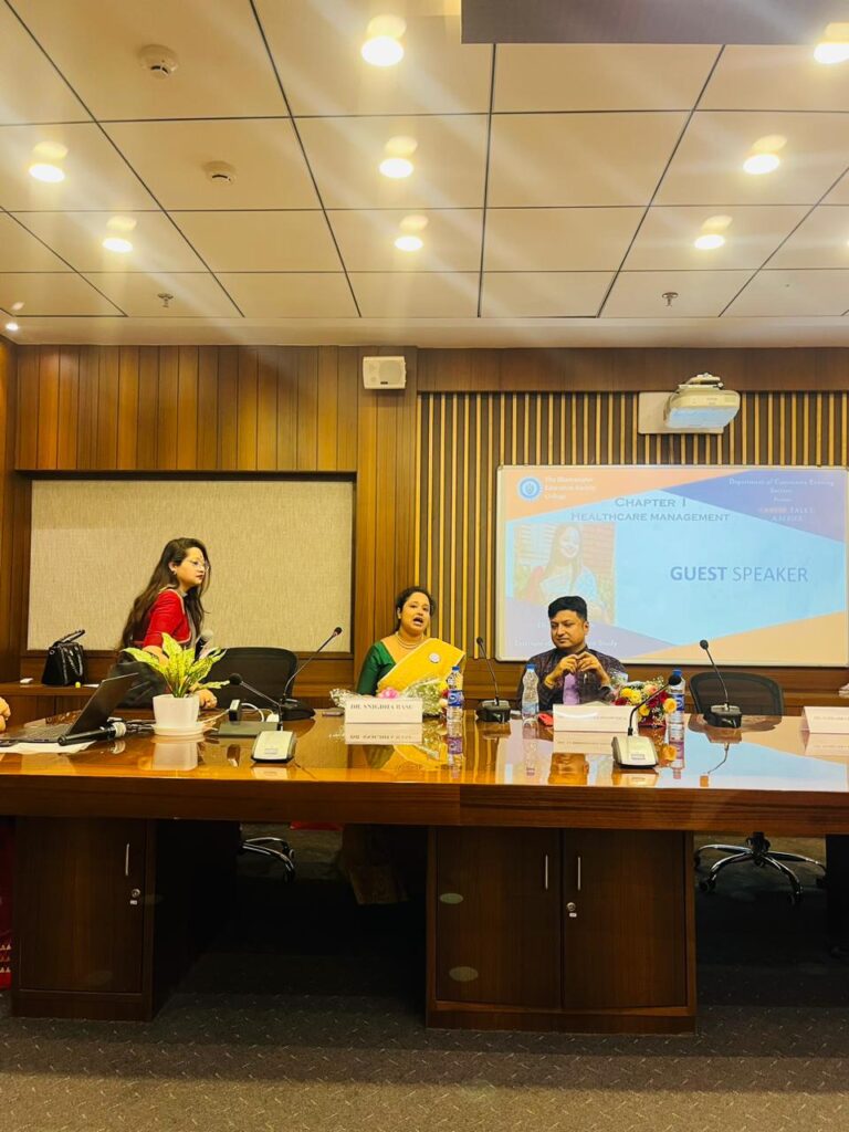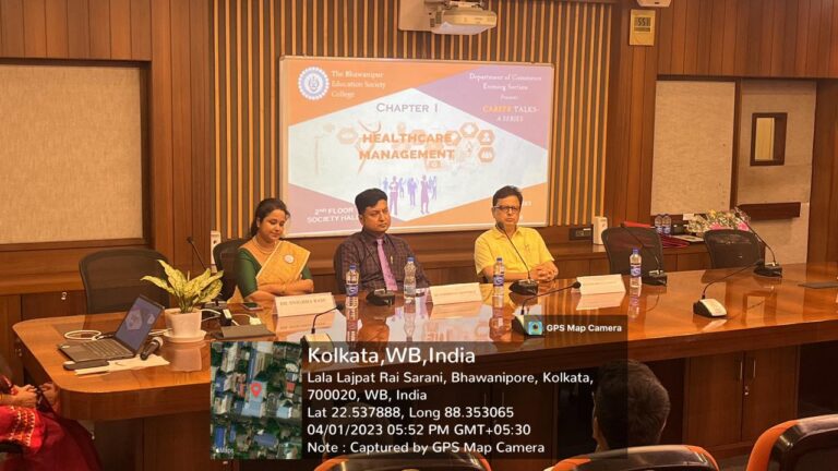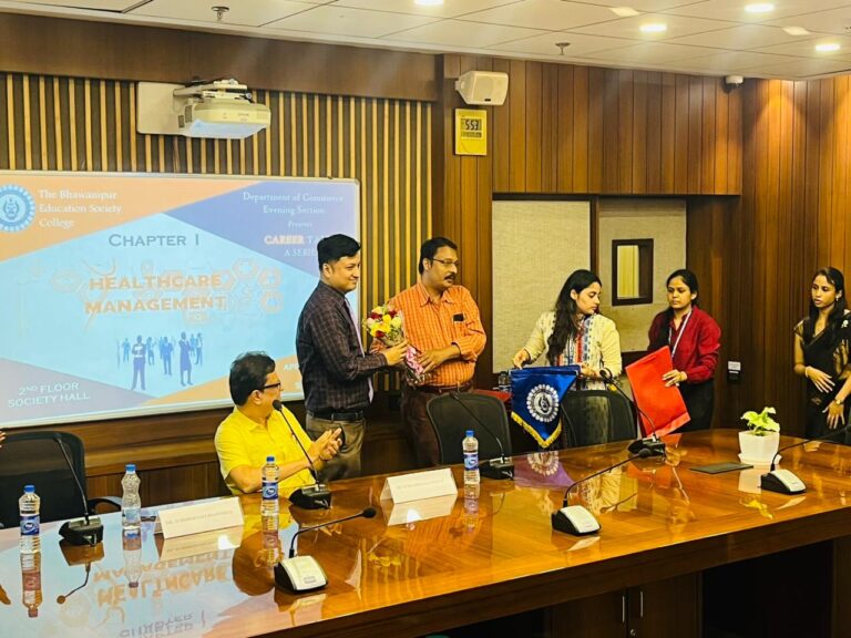 The Department of Commerce has envisioned ‘Career Talks – A Series’, over a period of two months (April ’23-May ’23) particularly for the semester VI students who are soon to leave the guided threshold of the college and venture into professional space. This is perhaps the most befitting time to make them aware of the various career opportunities that await their exploring. The series is designed to comprise five chapters, namely on healthcare management, entrepreneurship development, employability skills and/or industry requisites in the form of a panel discussion with human resource managers of prominent business houses, stock market and unconventional careers which have not only boomed in the last few years but also proven to be lucrative. The first chapter ‘Healthcare Management’ was held on the 1st of April ’23 at 5:30pm in the second-floor society hall. The programme commenced with a welcome address followed by an official inauguration of the series by the compere of the evening and the coordinator of the Student Activities Committee, Ms Arundhati Mazumder. Thereafter the felicitation ceremony was conducted wherein the two eminent speakers, Dr Subhrojyoti Bhowmick, Clinical Director, Peerless Hospital and Dr Snigdha Basu, Principal IMS, were presented with tokens of appreciation. Dr Subharata Ganguly, Teacher in Charge, delivered a felicitous opening address, setting the tone for the session. The programme furthered with Dr Basu giving an overview of the curriculum that is followed under healthcare management. She walked the students through the academic courses/degrees which students could choose to pursue after completing the graduation programme in Commerce.