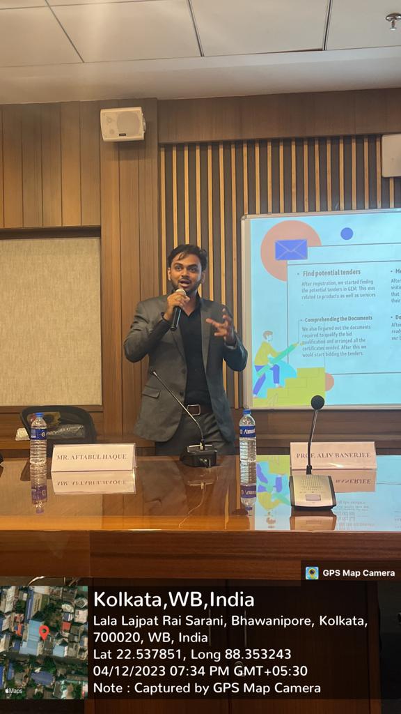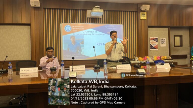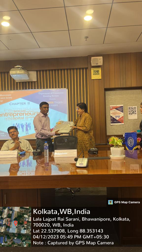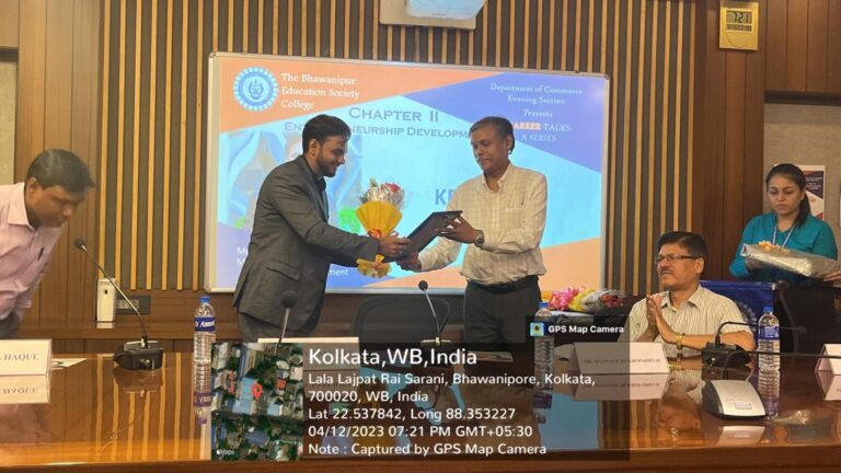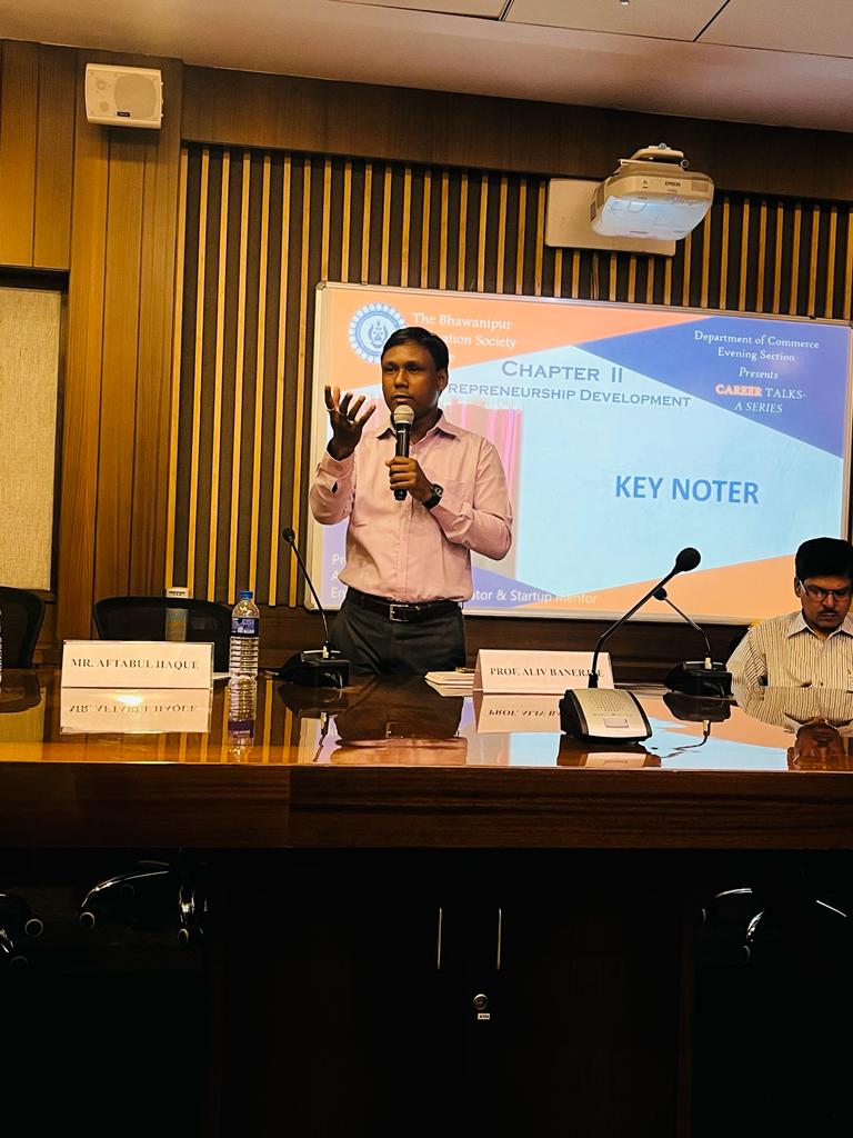 The third speaker of the evening, Mr Aftabul Haque, an Alumnus (Dept. of Business Administration, The BESC) and Managing Director of Neos Facility Management Pvt Ltd was felicitated on arrival and invited to share the story of his journey in becoming a successful entrepreneur. While addressing the students, he first thanked the college for playing a pivotal role in giving direction to his ideas and then shared his admiration for his alma mater. Mr Aftabul further narrated his entrepreneurial venture focusing on the ups and downs and various experimental approaches before he struck the correct model. He discussed in details GEM- a government one stop e-Marketplace where common user goods and services can be procured. He reflected how his entrepreneurial endeavor skyrocketed on registering his goods and services on GEM. He explained the bidding process, payment structure and other finer particulars of the portal. He further offered to assist students if they wished to register on it. Concluding, Mr Aftabul brought to the fore the essence of hard work, dedication, genuineness and sentiment to give back to society.