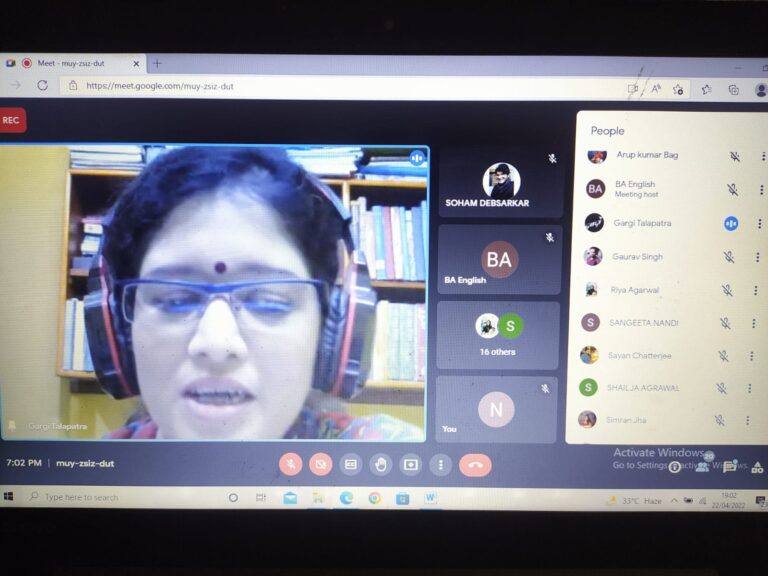 The webinar was followed by an interesting interactive session involving the students as well as the teachers of the Department. Many interesting inputs and observations were made by Prof. Debjani Ganguly, Vice Principal (Arts). The webinar was conducted through the GSuite for Education made available by the College and was moderated by Prof. Soumyajit Chandra.