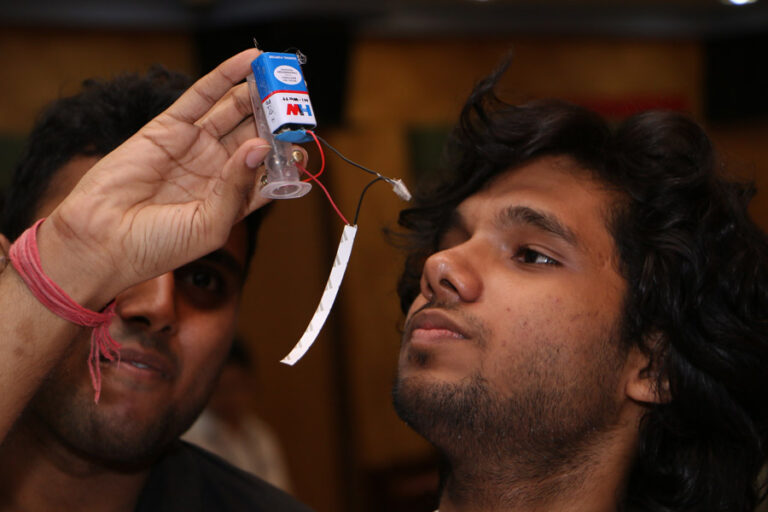 The event covered making of the six projects which were the Virtual Reality glasses, 3D holographic projector, trip wire alarm, USB fan, Reel converter, & the Popcorn Machine. There were 42 registrants in total so we decided to group them as six per group eventually making seven groups which were Team Radon(mentored by Trishala Mitra), Titanium(Karan Mundhra), Uranium(Neha Shaw), Xenon(Keshav Khandelwal), Helium(Shibhanwita Roy) , Neon(Sunny kr. Singh), Argon(Trishita Das). The event was superbly hosted and lead by Rahul Agarwal. The time allotted for making the gadgets was 1 hour, manuals for each of the projects were given. When the clock started ticking, the participants rushed to the inventory collecting the required materials for making the gadgets. The event was full of pressure, excitement and even a bit of shock for the mentors. The cameramen covering the event were Anirban Roy and Indranil Mukherjee. They were also in charge of the logistics of the event. At the end, the judges(Rahul Agarwal & Rahul Agrawal) went to each team and inspected the projects and declared Team Radon as the winner and Team Titanium as the runners-up. Later the judges also explained how to make each project and where they can improve themselves. The whole event was an idea of our Dean, Prof. Dilip Shah and was executed flawlessly under the guidance of Prof.Diyvesh Shah.