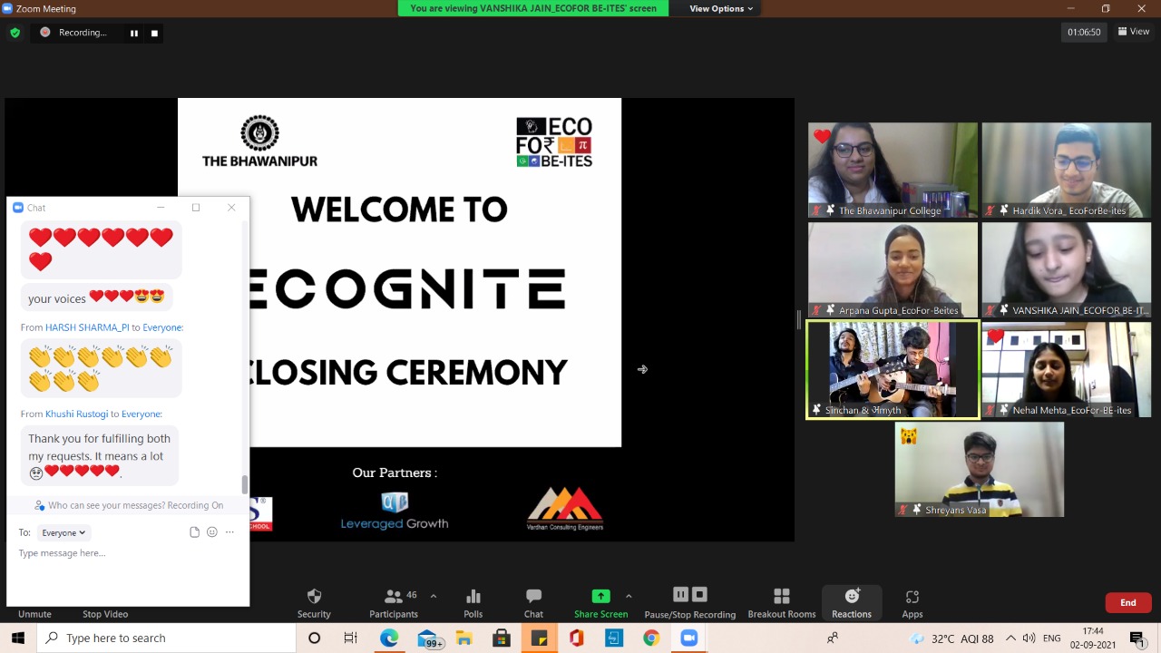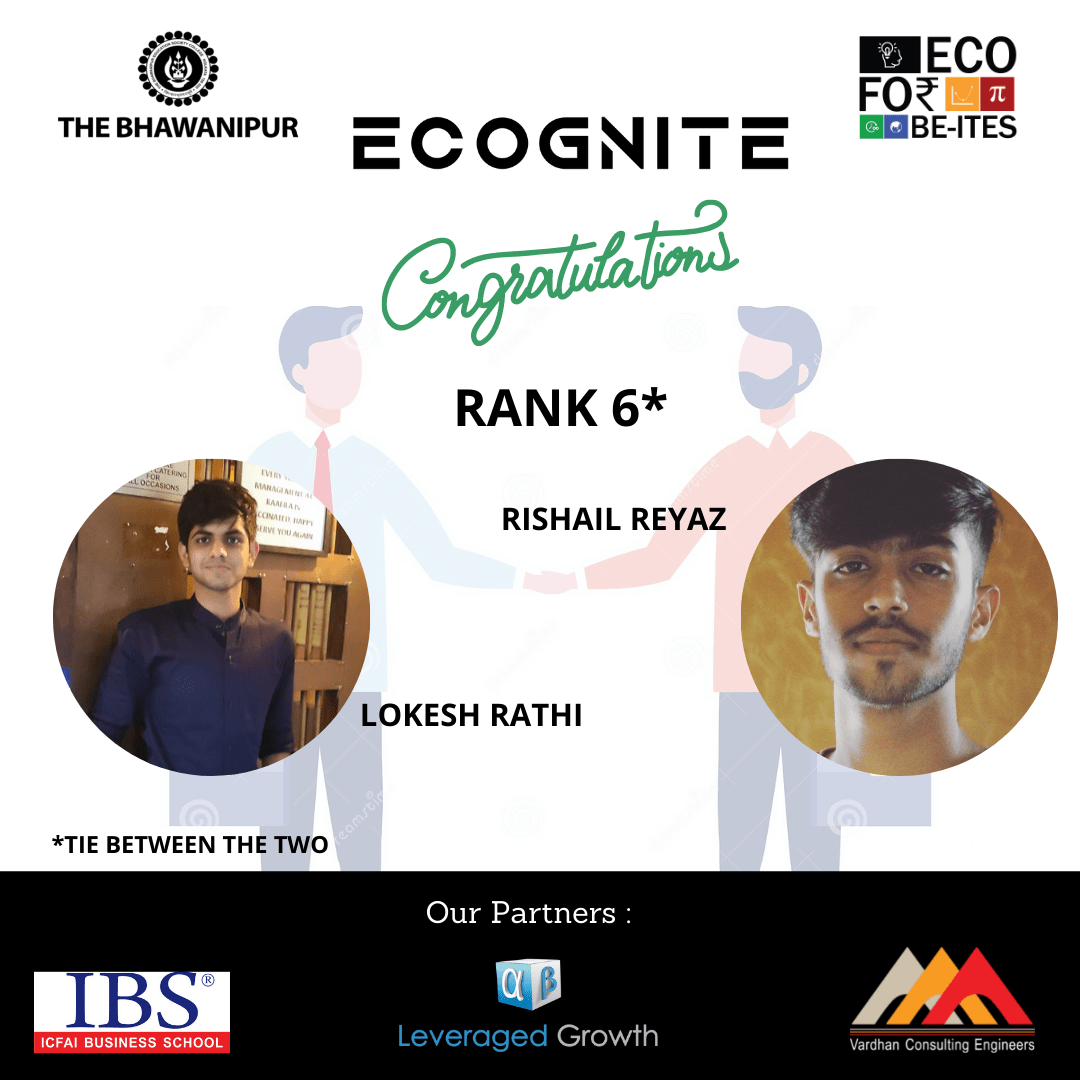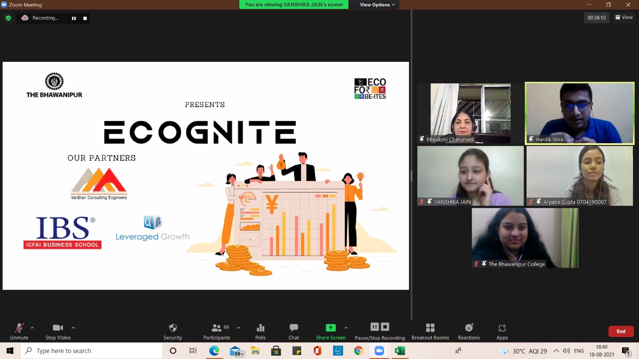 The Bhawanipur Education Society College in partnership with IBS ICFAI Business School and Leveraged Growth as Case Study round and Article Writing round partners respectively and Vardhan Consulting Engineers as Internship Partner organised a 14 day long intra college fest – “ECOGNITE” beginning from 18th August 2021 with Opening Ceremony and ending on 13th September 2021 with the Felicitation Ceremony. Co-ordinated by EcoFor BE-ites collective of the college, the rounds of the fest began from 19th August 2021 and continued for 14 days till 1st September 2021 and was conducted on D2C platform, zoom meetings with Felicitation ceremony held at Jubilee Hall. With 4 non-eliminatory rounds and 2 eliminatory rounds, the fest aimed at testing the abilities of all its participants on grounds of commerce, economics and most importantly, data analysis.