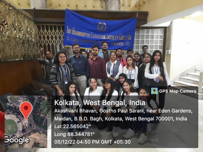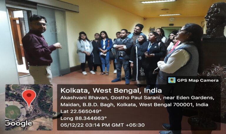 All India Radio (AIR), a branch of Prasar Bharati, is the national public radio broadcaster of India. It has been formally known as Akashvani since 1957, which in Sanskrit it means “Voice from the Sky.” It started back in 1936. The Akashwani Bhawan has got several departments working in a synchronised manner, dedicated solely towards knowledge transmission and entertainment for the entire population. Our students were guided by Programme Head, Mr. Subhayan Bala and his team. Students were first oriented regarding the several stations that function under Akashwani Bhawan. They were taken to the archival record room where they were shown how they have maintained interviews of imminent dignitaries in cassettes of 5 inches (Duration-20 Minutes), 7 inches (Duration-30 Minutes) and 10 inches (Duration-1 hour). One such cassette was played on the tape player where our students heard a 15-minute conversation of Nelson Mandela dating back to 1990. Besides, we saw the Master Control Room where the technical team revealed the processes involved in ensuring the final tonal output being catered to the greater audience without any technical glitch. Amongst the other technical sections, students were exposed to two kinds of acoustic rooms, first was the Indian Classical Room and the next was the Western Music Room. Mr. Subhayan Bala explicated how each of these rooms were structured differently as per the sound modulations and types of musical instruments being played there. Our students also witnessed a live talk show getting on air where Mr Subhayan demonstrated how with an equaliser, the pitch and sound is maintained. Our students were delighted to get the opportunity speaking over the microphone in one of their talk studios. Dr Rekha Nariwal, Associate Professor and Sayandita Deb Roy, College Whole Time Teacher, Department of Education also had an opportunity to be a part of the talk studio. In a nutshell. the students through this educational excursion ultimately discovered the technical aspect of Radio and how the support team plays a quintessential role in broadcasting the programmes. Lastly, Mr Subhayan took our students to the  live broadcasting room of FM Rainbow, where students were amazed to see RJ Mahua connecting with the audience. She displayed how one could “create a hook” between each of the songs being played by sharing interesting stories and getting the audience intrigued to know more about it. The tour ended by capturing a moment with the entire team of Akashwani Bhawan with the students and the faculty members.