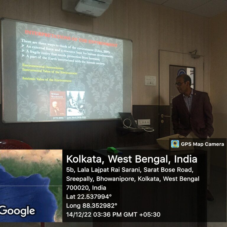 The department of Geography of The Bhawanipur Education Society College organized an Extension lecture on the topic ‘Environmental Management in the Anthropocene-some recent terms and concepts’ on 14.12.2022, Wednesday at 3pm in the Geography Laboratory (Room no. 532). The lecture was delivered by Mr. Rajarshi Dasgupta, SACT, Department of Geography, East Calcutta Girls’ College. The event was attended by 16 students and 2 teachers of the Geography Department.
