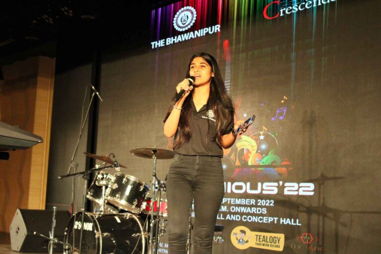 Rahul Jagpal displayed his talents by amusing the audience with his rapping skills after Dil Fake and Captain Singh made a special guest performance, which caused the crowd to go berserk. Additionally, we saw our Principal Guests Kaustav Sir and Srijita Ma’am perform live on stage while using their incredible vocals. Along with magnificent ghazals and slokas like “Mangalam Bhagwan Vishnu” and Ragas like “Raag Bhairavi,” participants sang Bollywood songs like Kesariya, Saiyaan, Dua, Pehla Nasha, Barishein, etc. The participants sang a variety of Western songs, including Lovely, Shallow, Unstoppable, Girl Crush, feeling good, My heart will go on, etc. With his rendition of the song Man in the Mirror, Theo from Bhawanipur College mesmerised the audience. Metal music was performed live on the spot by the Crescendo representative Shwetank Singh using his outstanding guitar talents. Arpita Biswas of Bhawanipur, who was not participating, received tremendous support from the audience as she sang passionately. Sreya Kumari Gupta, Prachita Roy, Srishti Jhunjhunwala, Tushitaa Chughani, Mayank Sharma, Payal Rajak, and Taiba Mohsin served as the event’s anchors and contributed their all to make it a grand success. Arka Mukherjee, Anisha Nuwal, and Harshita Bhartiya served as our photographers to capture Euphonious’ unforgettable performances. Following the uplifting and exhilarating performance at Euphonious, the audience left with renewed vigor and smiles on their faces. -Reported By  Tanisha Hirawat