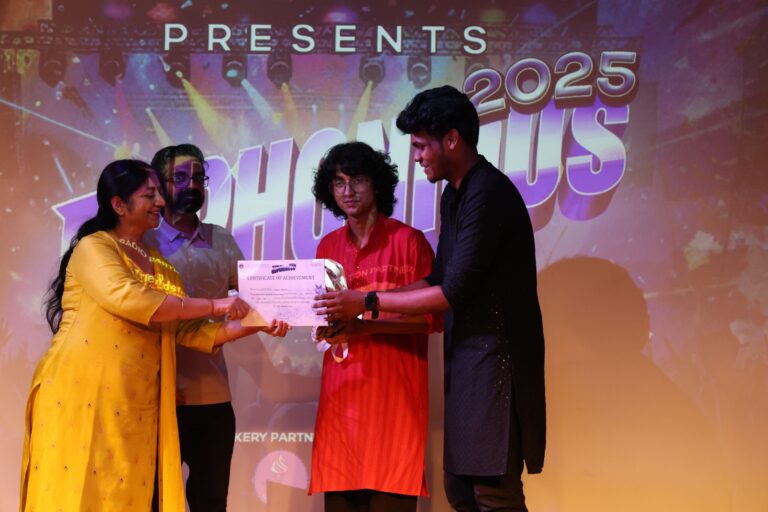 Solo Eastern: Centuries of Indian tradition, emotion, and culture are represented through Eastern music, giving a sense of pride and highlighting the love for our Motherland. Solo Eastern, the next event of Euphonious took place in the Concept Hall from 11:30 A.M onwards to 12:00 P.M. with Promita Mukherjee, the judge for the day. She is a renowned classical singer with many years of experience. There were eight participants, and every participant was allotted a total of four minutes to present their songs. Songs like “Mono Re Krishikaj Janona”, “O Majhi Re”, and “Lubb Par Aaye” were performed, creating magic on stage. Although the competition was tough, which made it difficult for the judge to decide upon the winners, finally, the best three colleges were decided, where THK Jain College bagged the first position, Asutosh College came second, and The Bhawanipur Education Society College stood third. Solo Rapping: The electrifying Rap battle began at 12:30 P.M. in the Jubilee Hall with six participants, and each participant was allowed four minutes to perform. Valentino Salvador was the judge, who is a freestyle Rap God from Kolkata. He transforms unspoken emotions into powerful lyrical stories and has performed at major festivals and exclusive events, sharing the stage with artists like Emiway Bantai and Ritviz. The young participants performed on various topics, but what impressed the most was the Rap on the current situations of the country, proving Rap to be a medium to raise a voice against the wrongs. The beats, the emotions, the words, and the energy that the stage witnessed were beyond expectations. After the performances were over, the judge, Valentino Salvador, treated the audience with a performance of his own. He advised the youth to always be original and speak their heart out while Rapping. The winners of the solo Rapping event were The Bhawanipur Education Society College Main Team, followed by The Bhawanipur Education Society College OTSE Team, securing the second place, and MSIT bagging the third place. Solo Instrumental: The melody and the sound of instruments like flutes, drums, and guitar set a mesmerising tone, creating a melodious atmosphere. Solo Instrumental took place in the Concept Hall, from 12:30 P.M. to 1:00 P.M., once again, with Navonil Sarkar being the judge. The event began with six participants and each getting four minutes to play their instruments. The event was soothing enough to calm the chaos going around and bring peace to the floor with its mesmerising performances. The event had its best three performances, where The Bhawanipur Education Society College OTSE Team won the first prize, IIHM won the second, and the third place was bagged by The Bhawanipur Education Society College Main Team. Solo Western: The soulful and awe-inspiring solo Western event began from 1:30 A.M. to 2:00 P.M. in the Jubilee Hall, with Kaustav Banerjee being the judge. He started his musical journey in the year 2011 with the band named “The Grooverz“. With a lot of band lineup changes and a lot of ups and downs, today, The Grooverz has seen a lot of success in national as well as international shows, like in Indonesia, Thailand, and Bhutan. The event witnessed seven participants with each having four-minute performances. The songs performed in the event included “The Night We Met”, “I Think They Call This Love”, “Unstoppable”, “Can’t Help Falling In Love”, “Let Her Go”, and more. One of the participants performed on “In The Stars,” dedicating the song to his grandmother, who had recently passed away. This proved that music transcends our emotions and feelings and helps us to express ourselves better. The Bhawanipur Education Society College took the first place, followed by St. Xavier’s University, which came second, and IIHM came third.