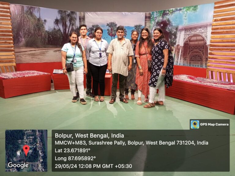 Objective of the event: The objective of the “Exploration of Cultural and Media Heritage: Educational Trip to Santiniketan” includes providing students with a comprehensive learning experience outside the classroom, focusing on the rich cultural and media heritage of Santiniketan. Through the visit, students gained practical insights into cultural preservation, artistic expression, media production, and broadcasting. The trip aims to foster a deeper understanding and appreciation of cultural diversity, historical significance, and the role of media in society. Through these experiential learning activities, students develop critical thinking, communication skills, and a broader perspective on their academic disciplines.