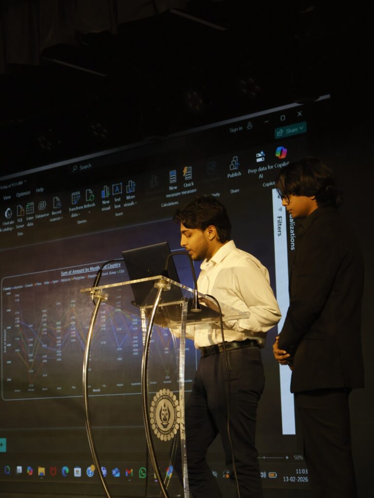 On 13th February 2026, the campus was graced by the presence of two renowned industry experts, Mr. Arijit Dey and Ms. Payal Saraf Kandhari, both professionals from EY, who came to the workshop to assess the progress made by the students. The student groups presented their work before them. The experts provided constructive feedback and practical suggestions to each group, helping them refine their work and strengthen their understanding.