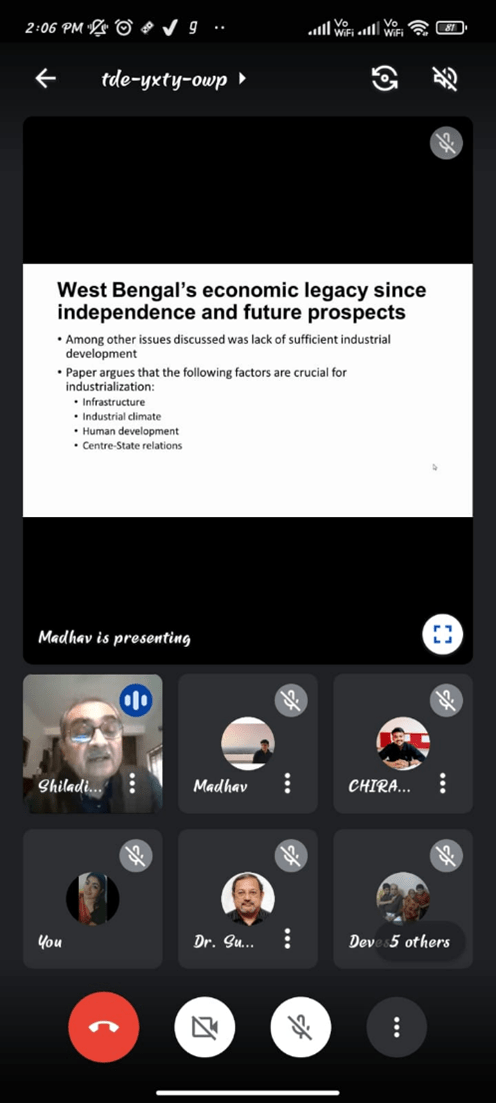 He brought the programme to a close by using Simple and Multiple Regression Analysis to discuss his own report on ‘West Bengal’s economic legacy since independence and future prospects.’