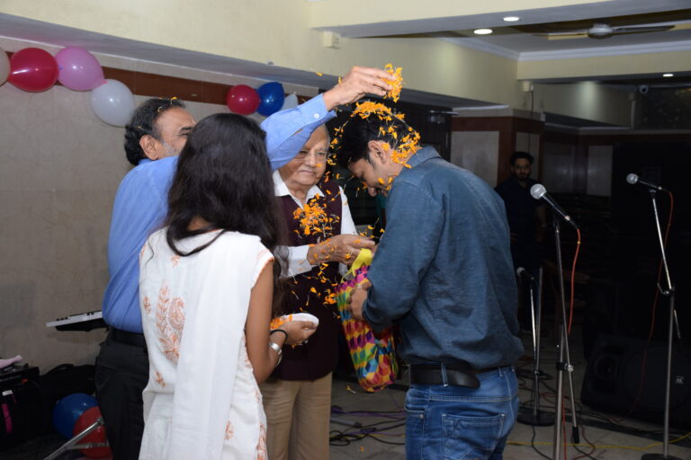 Snacks, including the Indian delicacies Malpua and Litti Chokha were served; and towards the end, the DJ urged everyone to take to the floor, to welcome the descent of Fagun, and the flower petals spread their colourful merriment.