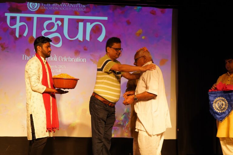 With the onset of spring, the country finds itself engulfed in the colours of Holi, one of India’s most celebrated festivals. Close to the ‘Phalguna Purnima’ Holi has many unique and unusual forms of celebration, making it a highly thrilling festival. One such unique celebration occurs here at The Bhawanipur Education Society College, where ‘Fagun’ is organised honouring the non-teaching Staff of the college who are an integral part of the college & its functioning. Held in the college premises as a token of gratitude towards the people who responsibly care for the institution all year round, this year Fagun celebrations took place on the 23rd of March 2024 in the Jubilee Hall.