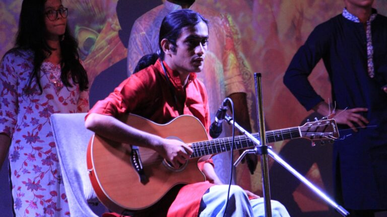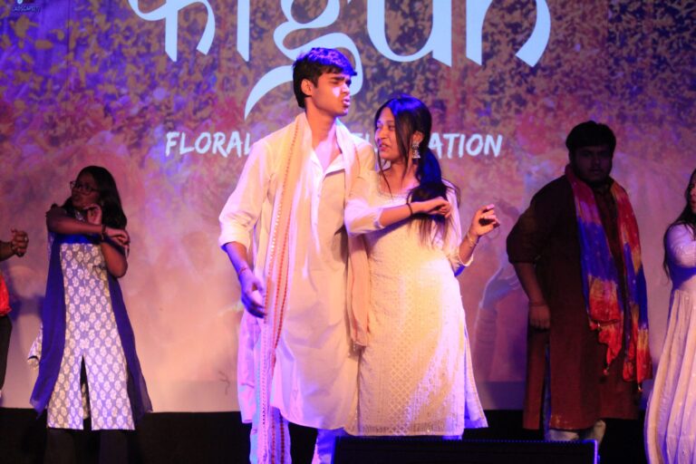 Holi, the festival of colours, is all about togetherness, celebration, and joy. To embrace the spirit of Holi, The Bhawanipur Education Society College celebrated Fagun 2025 on the 10th of March 2025 to express gratitude to the non-teaching staff of the institution who contribute significantly to the growth and maintenance of the college. With a “Radha-Krishna” themed Holi celebration, Fagun 2025 took place in the Jubilee Hall of the college campus from 4:30 P.M. onwards. As the guests entered the hall, student volunteers applied tilak on their foreheads, setting an auspicious tone for the rest of the celebration.