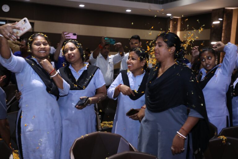 The programme concluded with a floral shower on the staff, recreating the festive spirit of Holi with music and dance, and expressing heartfelt appreciation for their hard work and commitment.