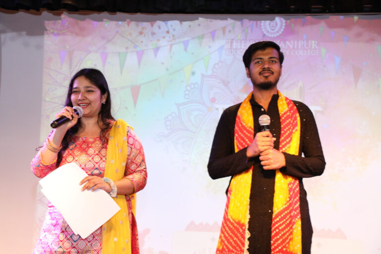 The cultural programme began with a musical performance by the Crescendo Collective of the college, whose Hindi and Bengali songs added to the festive atmosphere. The celebration continued with a short interactive segment featuring games such as “Guess the Song” and “Passing the Parcel,” which brought a light and cheerful mood to the gathering.