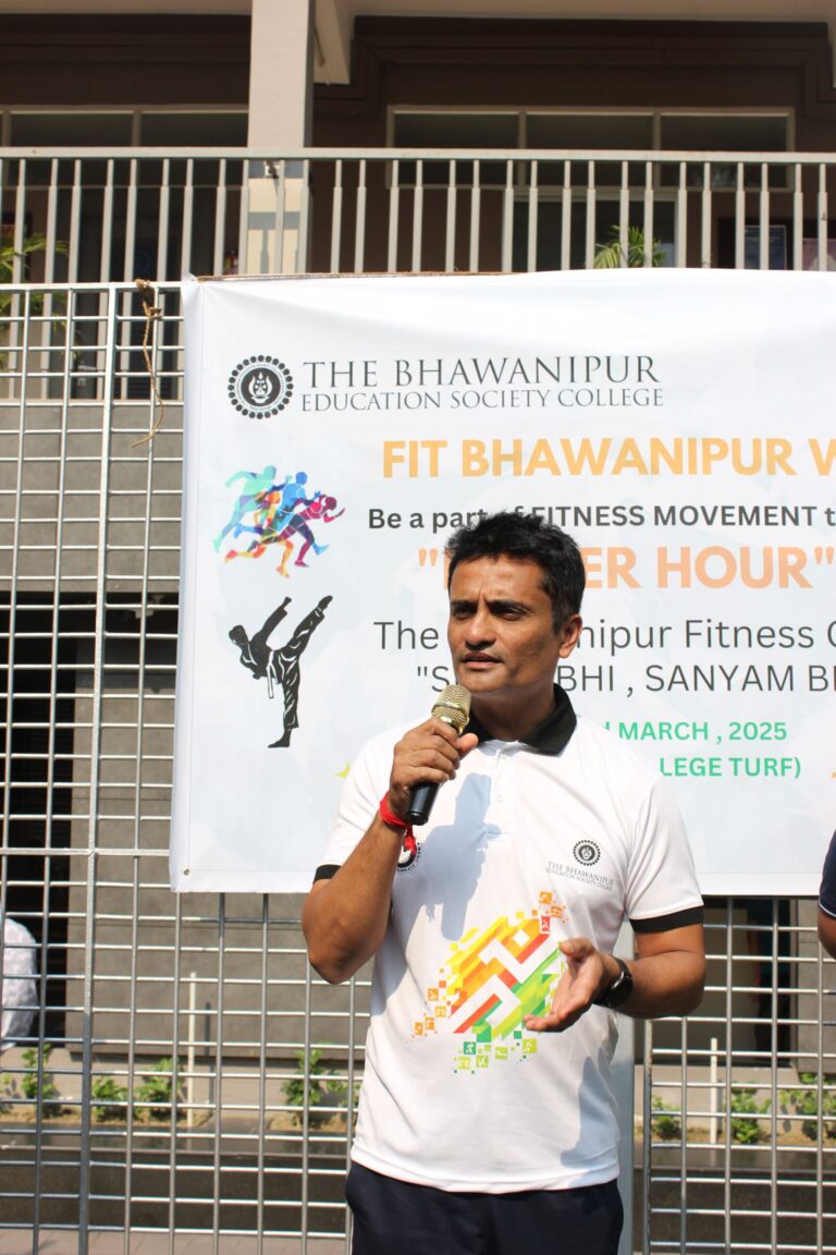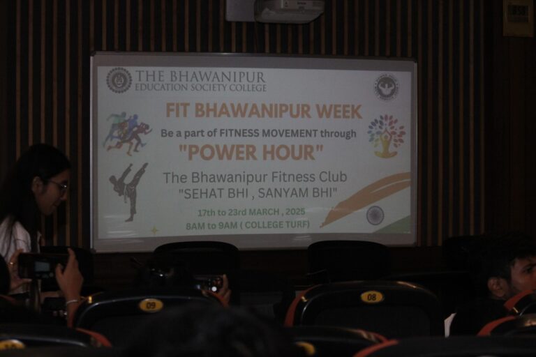 Fitness, with various definitions, is more popularly known as a lifestyle than just an activity. Concerned about their students’ fitness levels, The Bhawanipur Education Society College held Fit Bhawanipur Week 2025, a week-long festivity celebrating the idea of fitness. It was held from March 17th to March 23rd, 2025. The event aimed to spread awareness about individual and communal fitness. The event was officially commemorated with the delivery of a welcome speech by the Rector and Dean of Student Affairs, Prof. Dilip Shah, who highlighted the importance of fitness and urged the students to get the most out of these sessions. He then went on to felicitate the guest for the event, which kicked off with the first event, “Eat Right”, which was an interactive session between Mr. Soumyendu Ghosh, a renowned clinical dietician, nutritionist, and lifestyle counsellor, and the participants. The speaker imparted his expertise in fitness and health into a presentation that added immense value to the students’ lifestyle. Moving further, a push-up competition was held where Mr. Shyamantak Ganguly, an alumnus of our college and a 3rd Dan full-contact Karate Back Belt and a five-time national champion, was invited as the chief guest. Conducting the competition with a series of three different push-ups devised into rounds, the participants faced a first-hand test of their strength levels. The event furthered progressed into the third day event, which was Yoga and Mental fitness, introducing the participants to the practices and ideologies of yoga for the first time, Mr. Tushar Ali, an expert in yoga practices took the task under his wing to inculcate into the students the importance of the practices of yoga and how to perform the same in a fun way, his techniques undoubtedly proved effective as the participants performed asanas such as Surya-namaskar and Kamar-maddod asana.