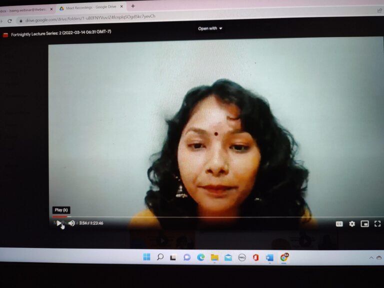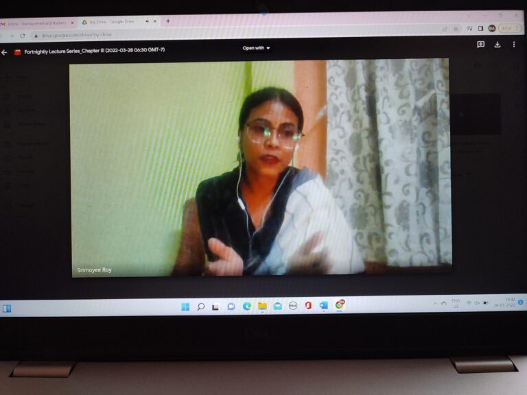 The second lecture in this series was delivered by Madhumita Biswas on Feminisms on 14th March 2022. Madhumita Biswas is an Assistant Professor, Department of English, Jhargram Raj College (Girls’ Wing). She did her graduation and Master’s from Presidency University, Kolkata and her MPhil from the University of Calcutta. She has several book chapters to her name and has also co-edited a book titled Indian Writing in English: A Reassessment. Her areas of interest are Feminism, African American Literature and Indian Writing in English. Prof. Biswas began her lecture by referring to the common misconceptions associated with the term feminism and the social stigma which is deliberately constructed around it by the dominant patriarchal attitudes in the society. Through a very informative presentation, she shared with the students the actual evolution of the term feminism and explained how the activist and academic aspects of theorization gradually came to complement each other through the three waves of feminism. Referring to the well-known writers and theorists such as Virginia Woolf and Simone de Beauvoir, Prof. Biswas explained the emerging perspectives in feminism throughout the 20th century to the students by continuously referring to the known facts of their own society. She explained the concept of literariness associated with feminist perspectives of literary works with special reference to Elaine Showalter and the concept of Gynocriticism. She also familiarised the students with the development of third world feminism and acquainted them with the essential plurality embedded in the term. Relating the theoretical and literary concepts associated with feminism with the familiar realities of everyday existence, Prof Biswas mesmerized the students with her clarity and in-depth analysis of the topic.