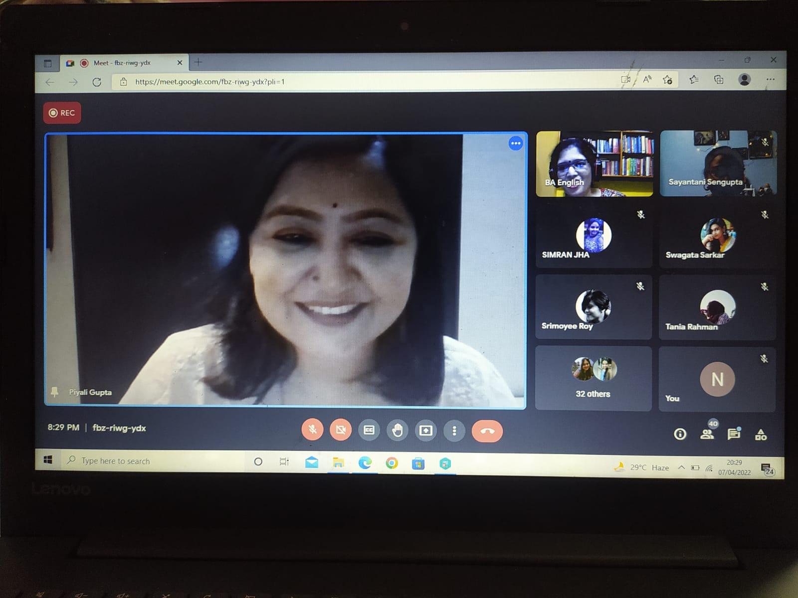 All these four lectures were organized on Google Meet through the GSuite account made available by the College. The lectures have been recorded for future use. This lecture series on Literary Theory – the first of its kind, organised by the Department of English was much appreciated by the students at the undergraduate as well as the postgraduate levels. After the completion of the series, feedback forms were sent to the student participants for departmental record.