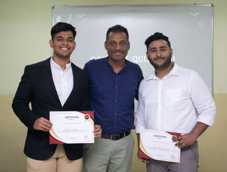 The quiz was orchestrated in two rounds, where the first round was held to filter through and recognise the top 6 teams who would compete for the first position. The questions provided for the elimination round caused chaos among the audience members. While one team emerged as a clear winner there was a tie breaker held for the rest of the six out of which only five where to be selected.