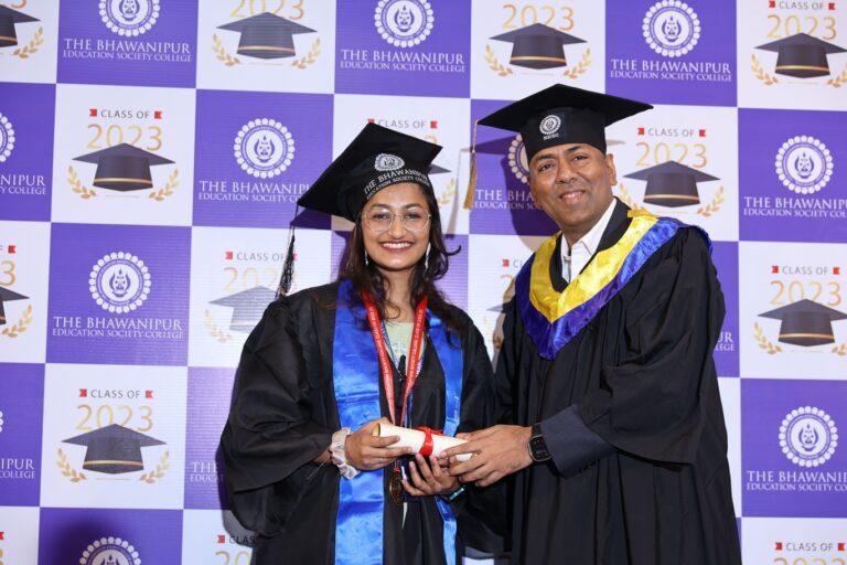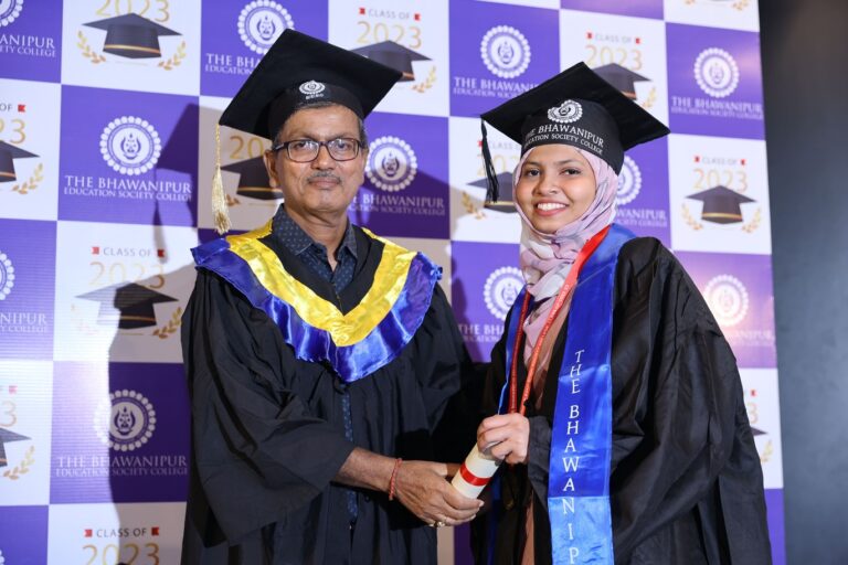 The completion of a journey begins by taking steps in the right direction. As The Bhawanipur Education Society College ticks off successful events one after the other, it reaches one of its highly awaited ceremony of Convocation. The BESC Graduation Felicitation Ceremony is dedicated to acknowledging its first-class graduating and post-graduating students and bidding farewell to them as they embark on a new journey moving forward in their lives. Students from the class of 2023 were invited to be a part of this occasion while adorning their graduate hats and academic regalia, to receive their diplomas from departmental heads. The proceedings were carried out over 2 days, the 9th & 10th of April 2024, in the Jubilee and Concept Halls of the college campus simultaneously. The ceremony handed out certificates in 11 slots to over 2,000 students; all from different disciplines of B.Com, B.A., B.B.A, B.SC, M.Com, and M.A. respectively. The gracious presence of 7 Chief Guests was another reason for joy, with notable persons such as Mr. Ankur Chaturvedi, Vice President of Emami Operations; CA Vikas Gangwal, Global head for finance and supply chain advisory in BSFI Enterprises at the Tata Consultancy Services; Dr. Ajay Pathak, Director of the ICFAI Business School; Dr. Prof. Prashant Mishra, Professor of Marketing, IIMC. Former Dean, IR and ER, IIM Calcutta; CA Sanjib Sanghi, Chairman of the Eastern India Chartered Accountants Students Association of EIRC of ICAI; Dr. R K Johri, Retired Inspector General of Police (IGP); and CA Amar Agarwalla, Author, Author, Poet, Ghostwriter & Motivational Speaker, Trainer and Mentor, who added prestige to the event with their inspiring presence. Also gracing the occasion were members from the management, Mr. Rajnikant Dani, Mr. Pradip Sheth, Mr. Jogesh Shah, Mrs. Renuka Bhatt, Mr. Bulbul Shah, Mr. Jitendra Shah, Mr. Umesh Thakker. From the administrative heads we had Dr. Subhabrata Gangopadhyay, Dr. Suman K Mukerjee, Prof. Dilip Shah, Dr. Sameer Banerjee, Dr. Pinki Saha, Dr. Tridib Sengupta, Dr. Samir Kanti Datta, Prof. Saspo Chakaborty, Prof . Minakshi Chaturvedi, Prof. Debjani Ganguly, Prof. Ananyya Banerjee, Prof. Paramita Chakravarty, Prof. Sayan Roy along with faculty members were there to felicitate the students. The dance teams representing Bollywood, Classical, and Western genres within the Flames Collective of BESC lit up the stage with their performances, entertaining the audience over the two days. The proceedings began with an opening address by Prof. Dilip Shah, highlighting the significance of the occasion and the accomplishments of the graduating students. Prof. Shah’s words of wisdom resonated with the audience as he urged the graduates to uphold the values of their alma mater and contribute positively to society. Following the address, the students took a solemn oath administered by the head of their respective departments, pledging to, “I pledge to use my knowledge, experience, and skill to the best of my ability and for the well-being of humanity. I will conduct myself responsibly and shall respect the rights and opinions and dignity of all. I will be a loyal ambassador for my alumna matters and will seek to maintain and enhance its reputation in all my dealings. I will endeavour to be known as a person of honour and will repute ever seeking to earn the piece of good conscience”. The occasion included a special recognition segment for outstanding achievements. Khadijah Ahmed, an alumna from B.Sc. (Hons) Computer Science, was felicitated with a laptop for securing the first rank in the University of Calcutta. Her remarkable accomplishment exemplifies the dedication and academic excellence fostered by The Bhawanipur College. Soon after, the graduating students came clad in Graduation robes one after the other and were felicitated with a medal, a scroll, and a congratulatory handshake, which was followed by a smile and a picture with our Chief Guests. At the end of the ceremony, Prof. Dilip Shah said that their relationship with the college will always remain as, “Once a Be- ites always a Be- ite .” Once everyone was felicitated the most awaited part of the ceremony came, as the students were asked to toss their hats on the third “hip, hip” and here’s how it went: “Hip, hip,….Hurray !” Hats were seen flying overhead representing the proud, happy, deserving graduates and Postgraduates from The Bhawanipur Education Society College, Class of 2022. Flaunting their degrees in hand and with lighted-up faces they walked out of the campus & it was indeed a sight to behold! The event concluded with radiant faces and bittersweet memories, as students reflected on their time at The Bhawanipur Education Society College. Here’s to celebrating their achievements and wishing them continued success in all their future endeavours! Reporter – Aniket Dasgupta Photographers – Nishchay Alokit Lakra, Agrag Ghosh, Papon Das, Suvam Guha